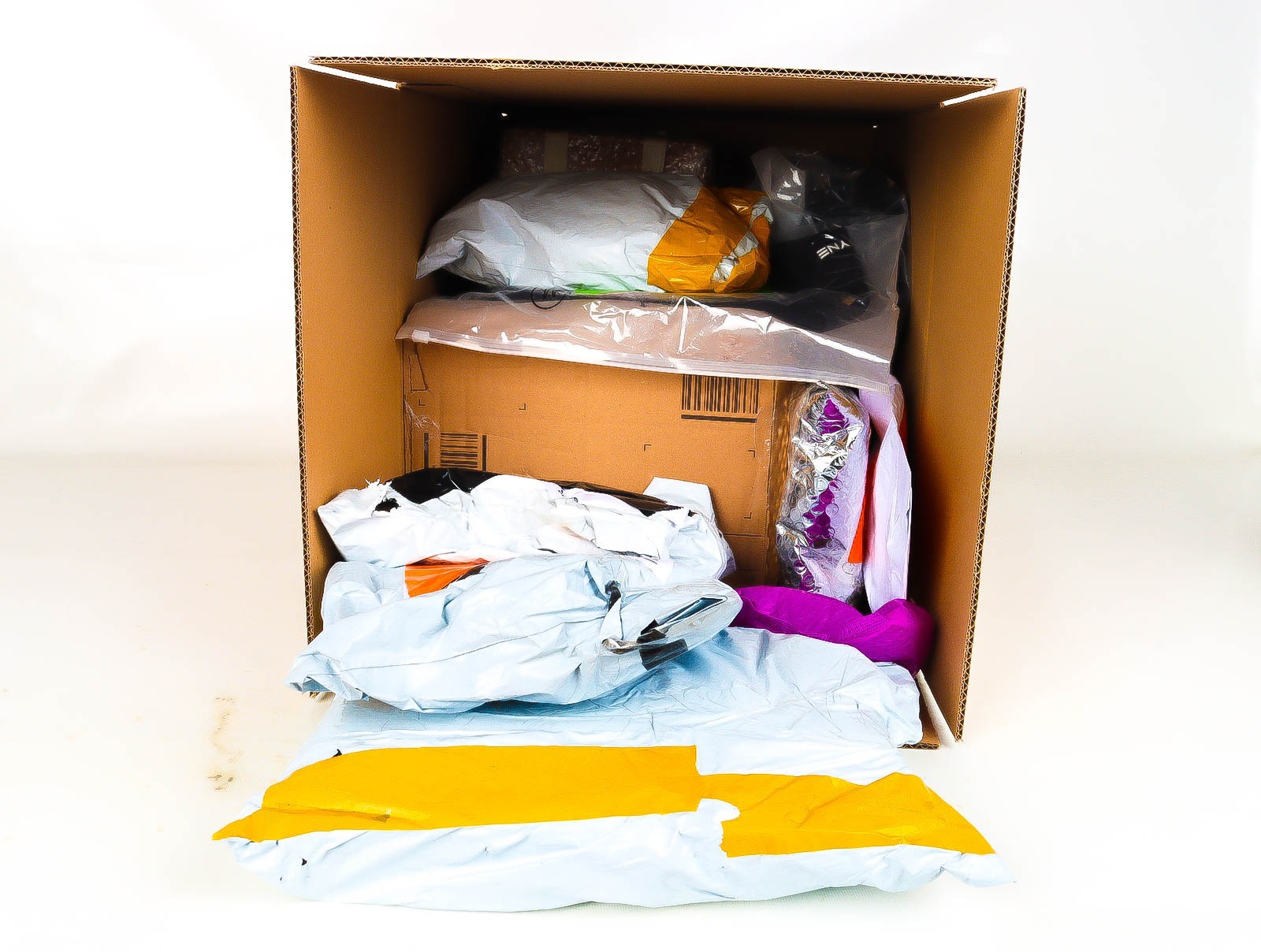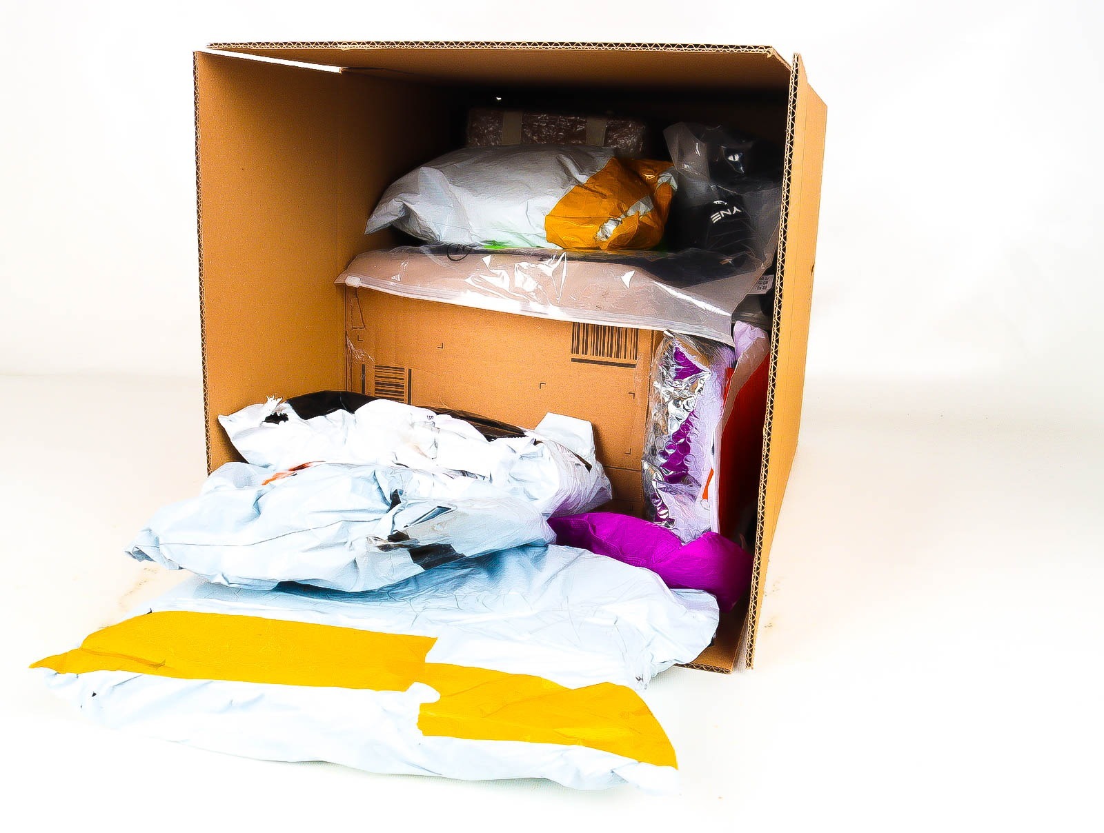 Deze pakketten zijn afkomstig van online retailers. De artikelen zijn binnen de zichttermijn teruggestuurd of zijn niet geleverd vanwege foutieve adressen, retourzendingen, of andere redenen.