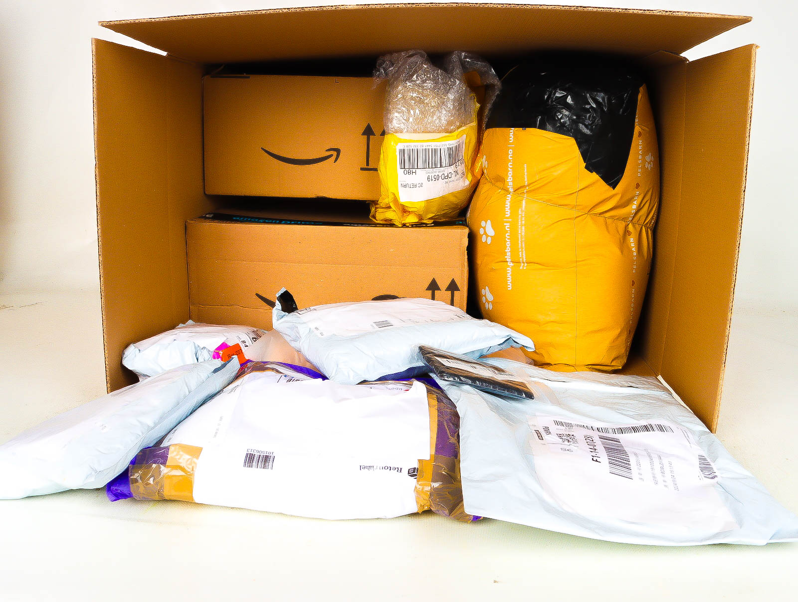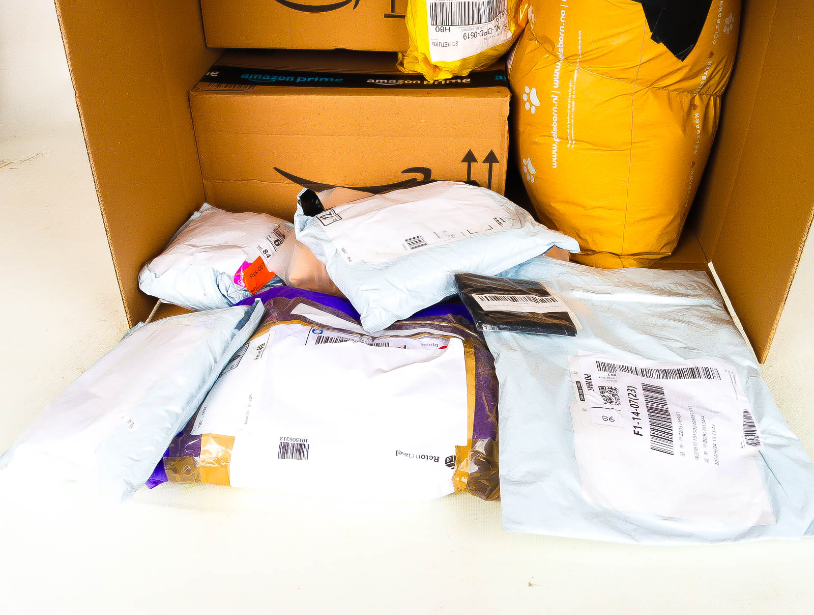 Deze pakketten zijn afkomstig van online retailers. De artikelen zijn binnen de zichttermijn teruggestuurd of zijn niet geleverd vanwege foutieve adressen, retourzendingen, of andere redenen.