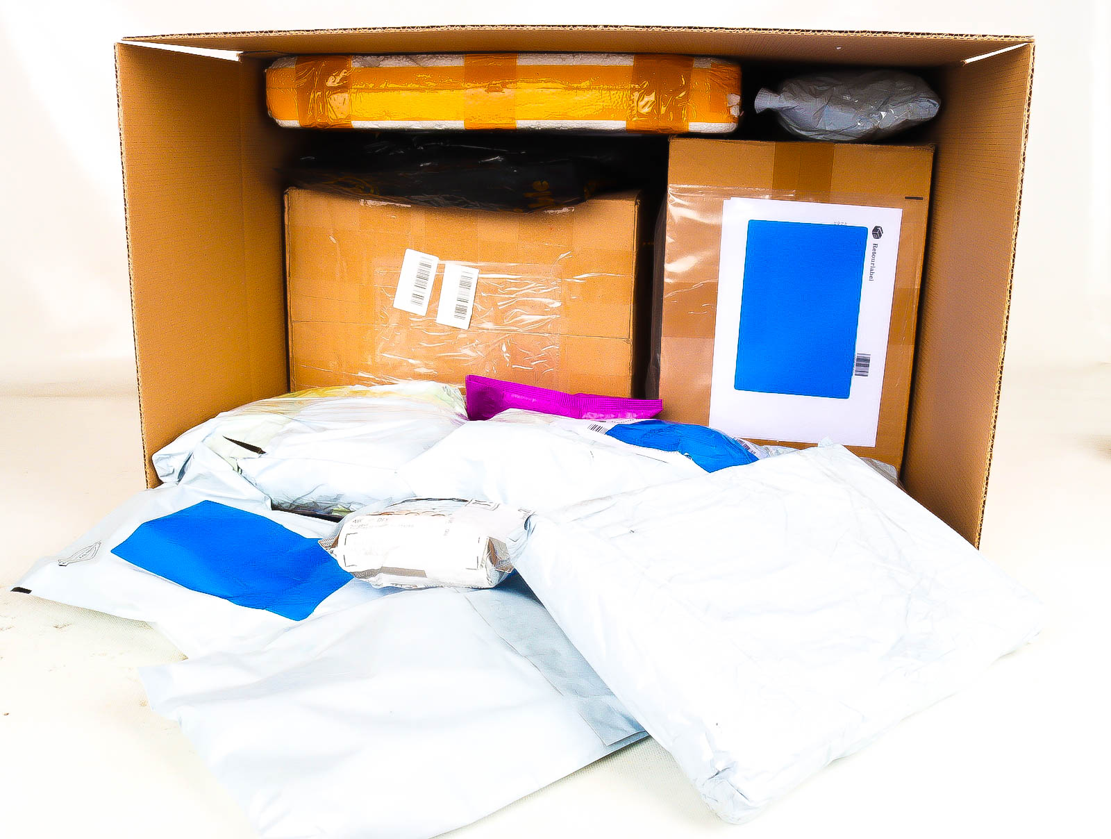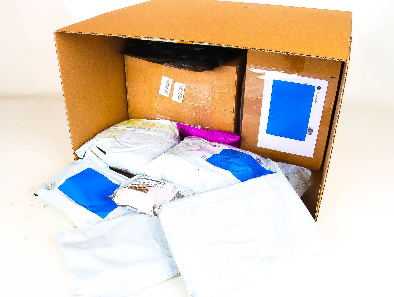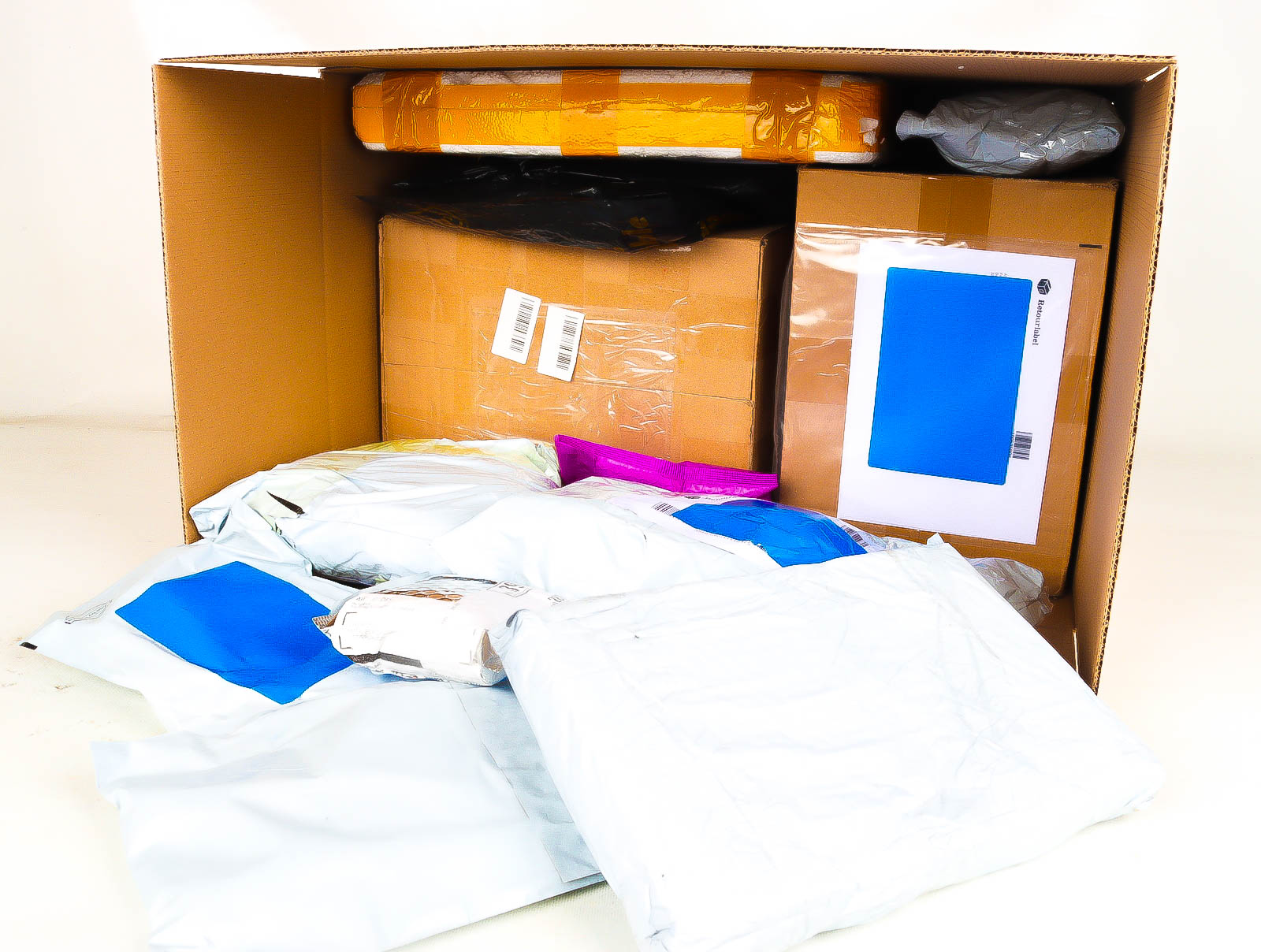 Deze pakketten zijn afkomstig van online retailers. De artikelen zijn binnen de zichttermijn teruggestuurd of zijn niet geleverd vanwege foutieve adressen, retourzendingen, of andere redenen.