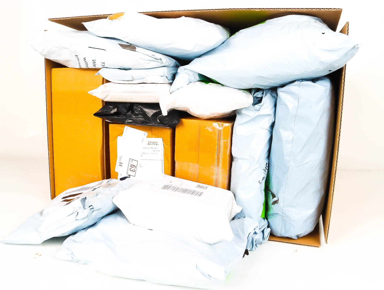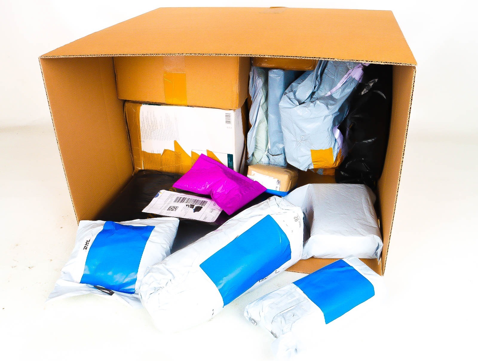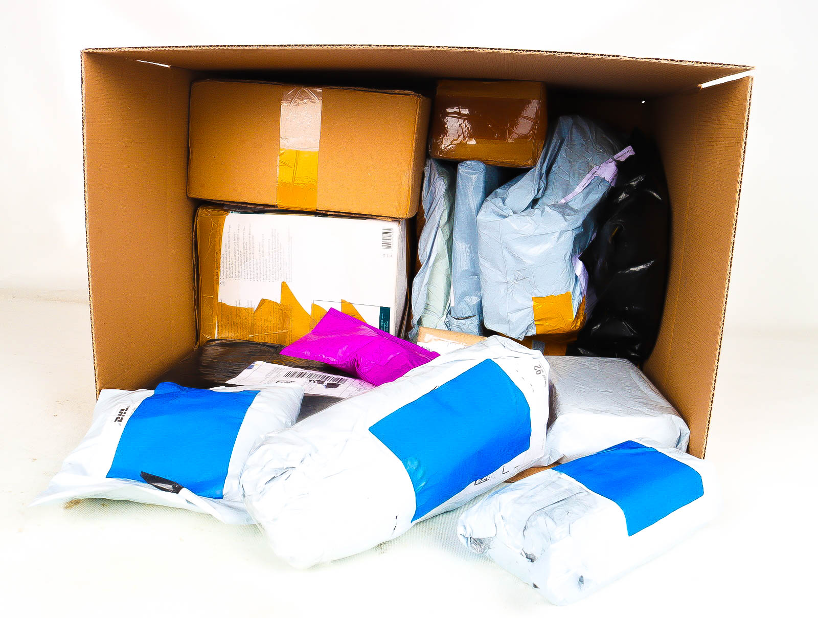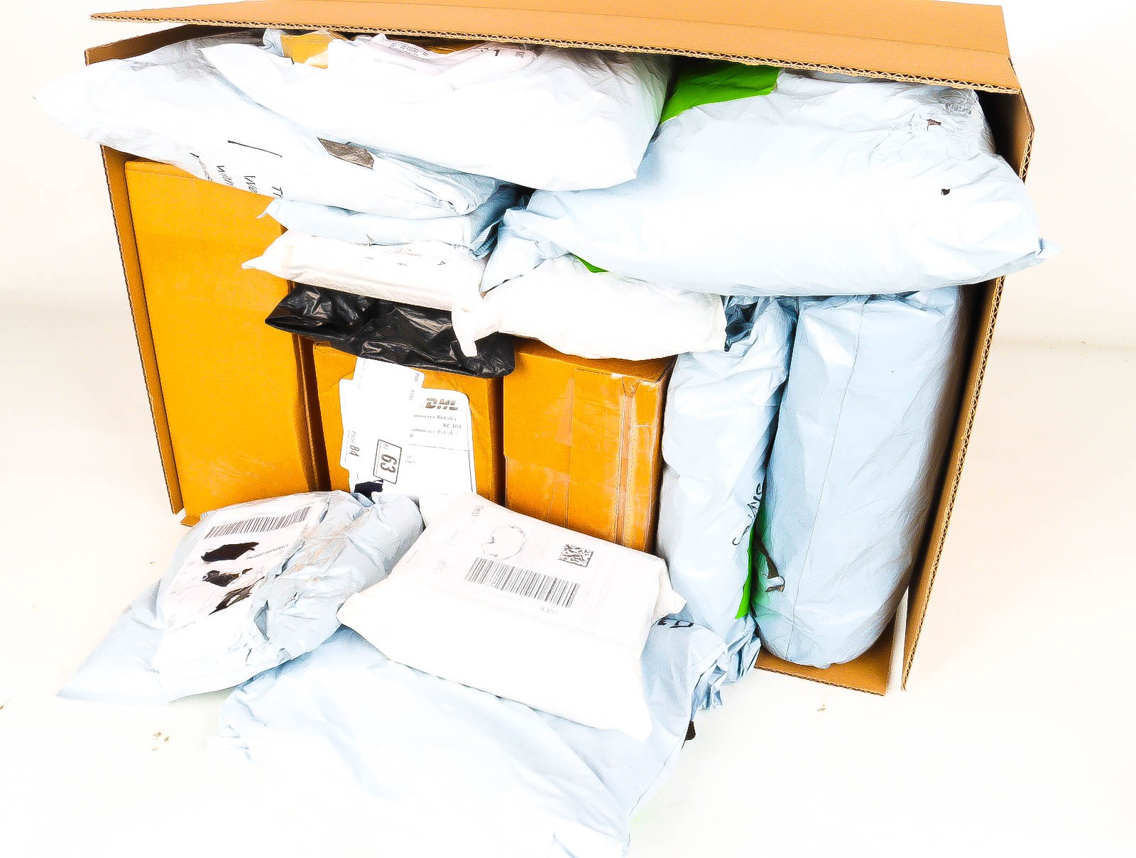 Deze pakketten zijn afkomstig van online retailers. De artikelen zijn binnen de zichttermijn teruggestuurd of zijn niet geleverd vanwege foutieve adressen, retourzendingen, of andere redenen.