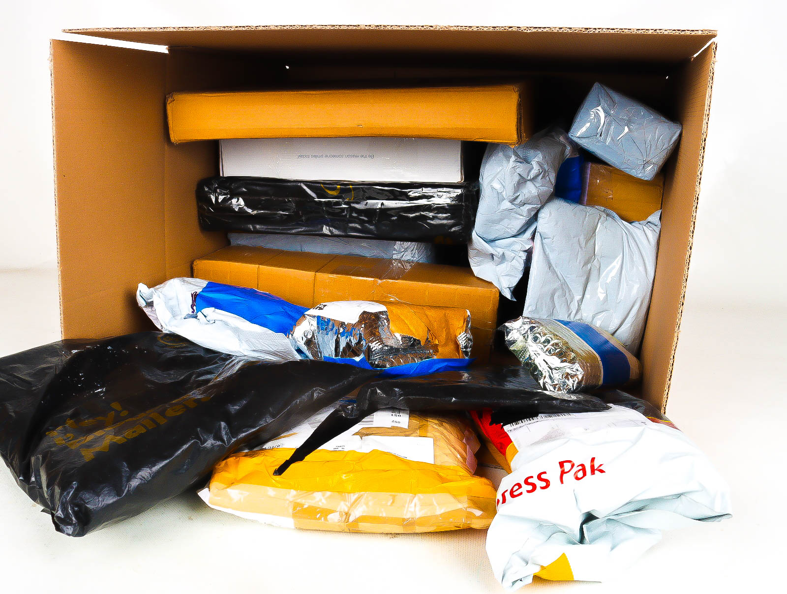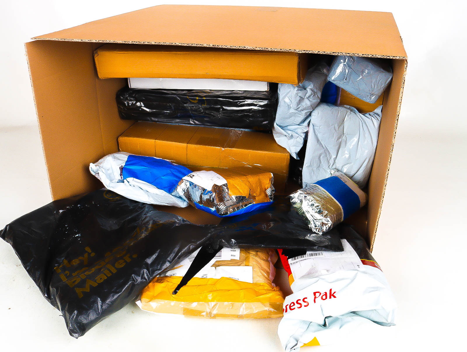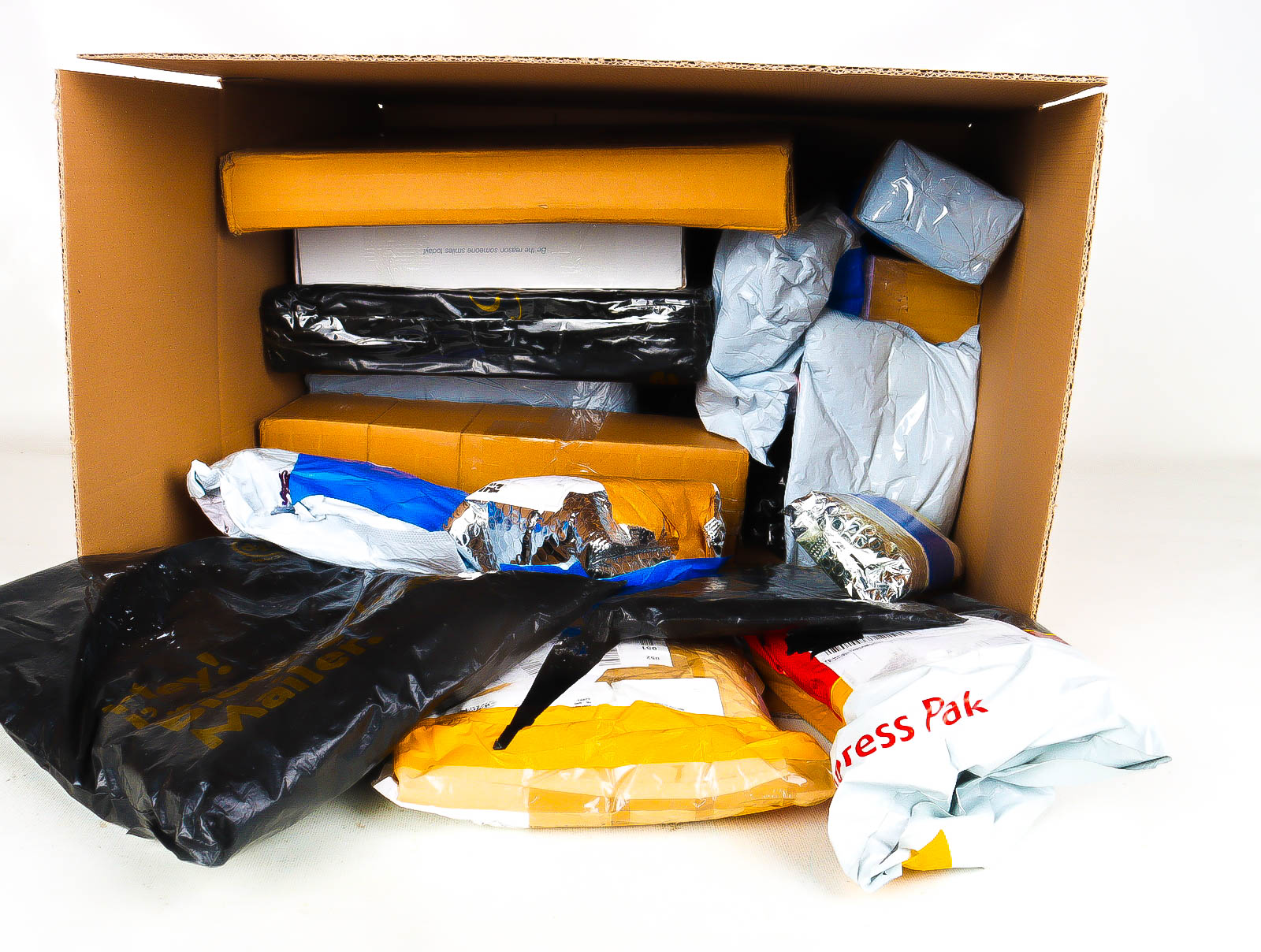 Deze pakketten zijn afkomstig van online retailers. De artikelen zijn binnen de zichttermijn teruggestuurd of zijn niet geleverd vanwege foutieve adressen, retourzendingen, of andere redenen.