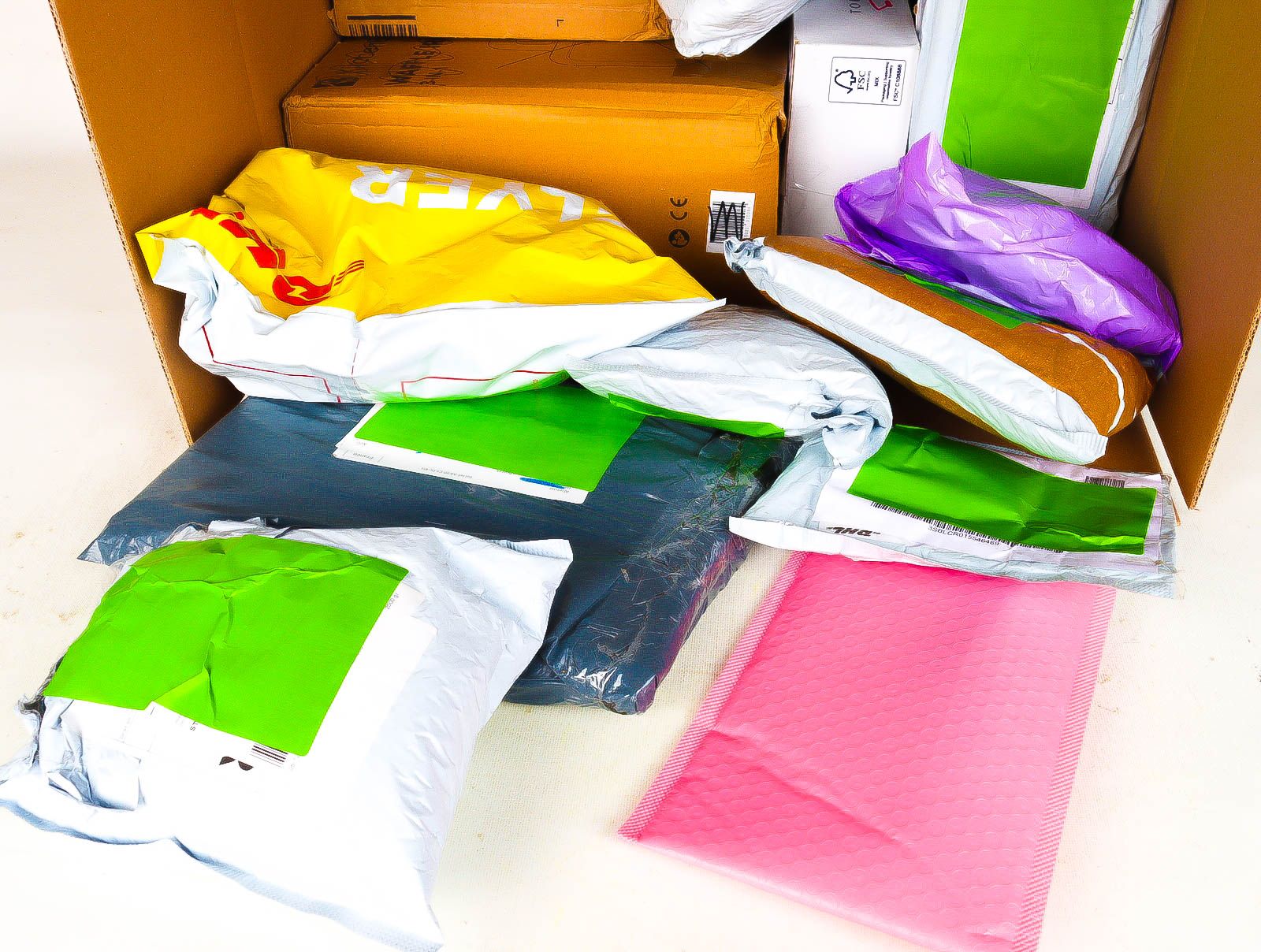 Deze pakketten zijn afkomstig van online retailers. De artikelen zijn binnen de zichttermijn teruggestuurd of zijn niet geleverd vanwege foutieve adressen, retourzendingen, of andere redenen.