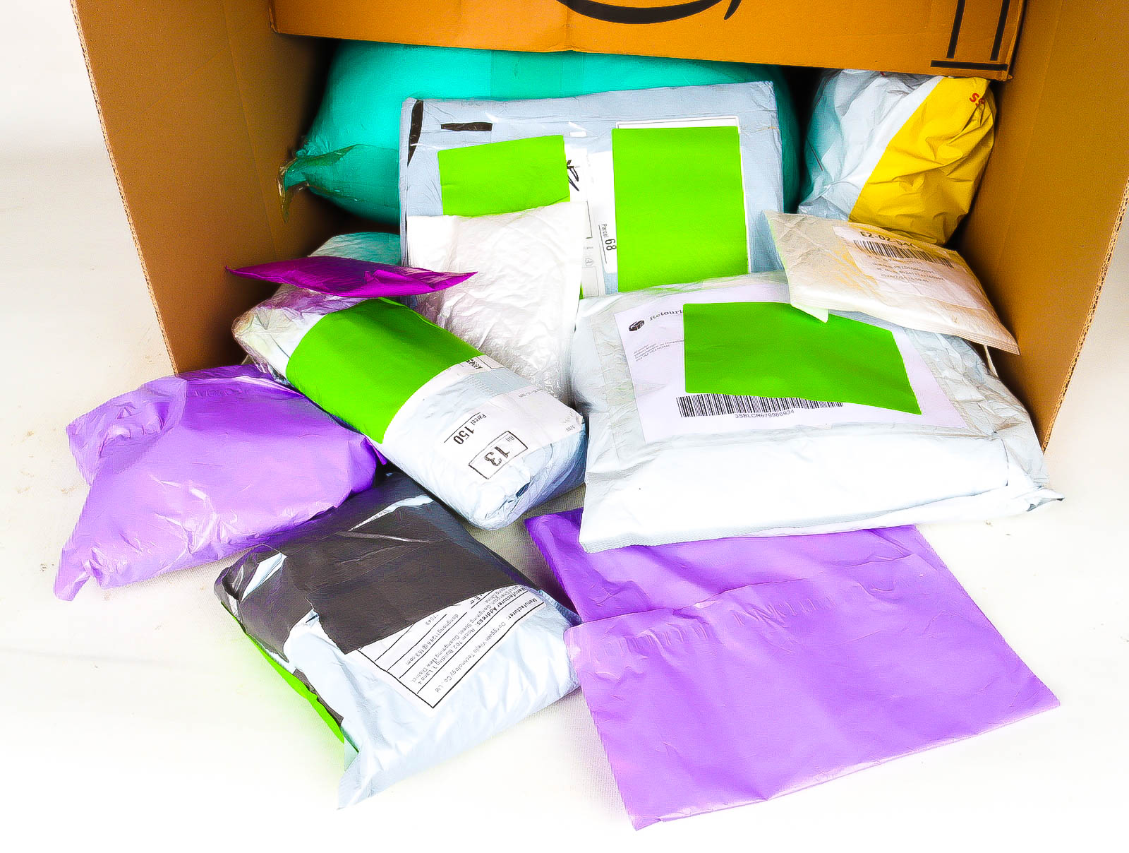 Deze pakketten zijn afkomstig van online retailers. De artikelen zijn binnen de zichttermijn teruggestuurd of zijn niet geleverd vanwege foutieve adressen, retourzendingen, of andere redenen.