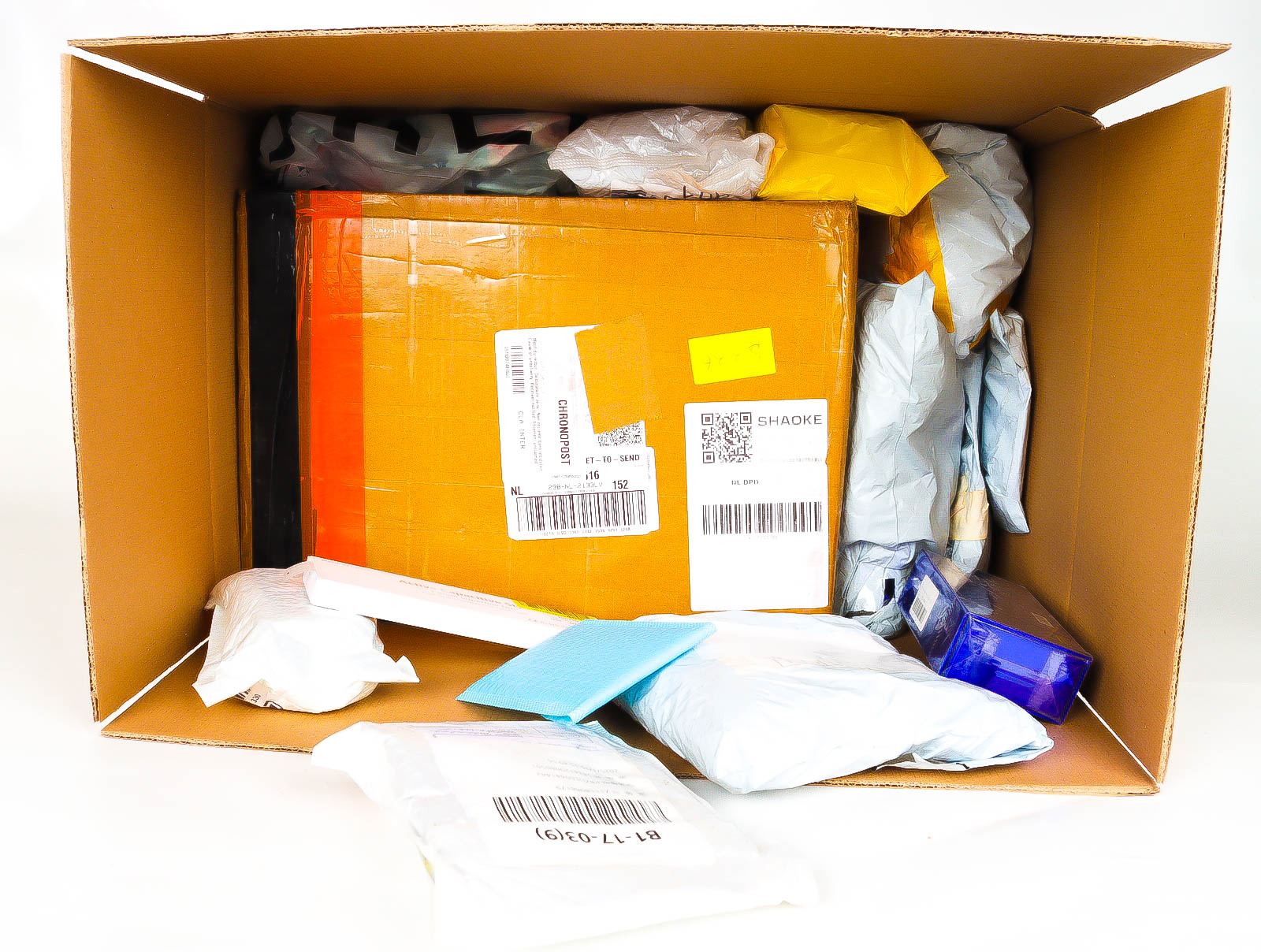 Deze pakketten zijn afkomstig van online retailers. De artikelen zijn binnen de zichttermijn teruggestuurd of zijn niet geleverd vanwege foutieve adressen, retourzendingen, of andere redenen.