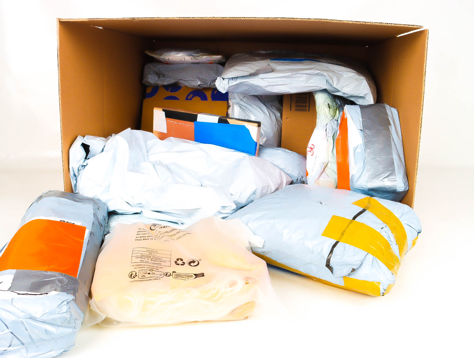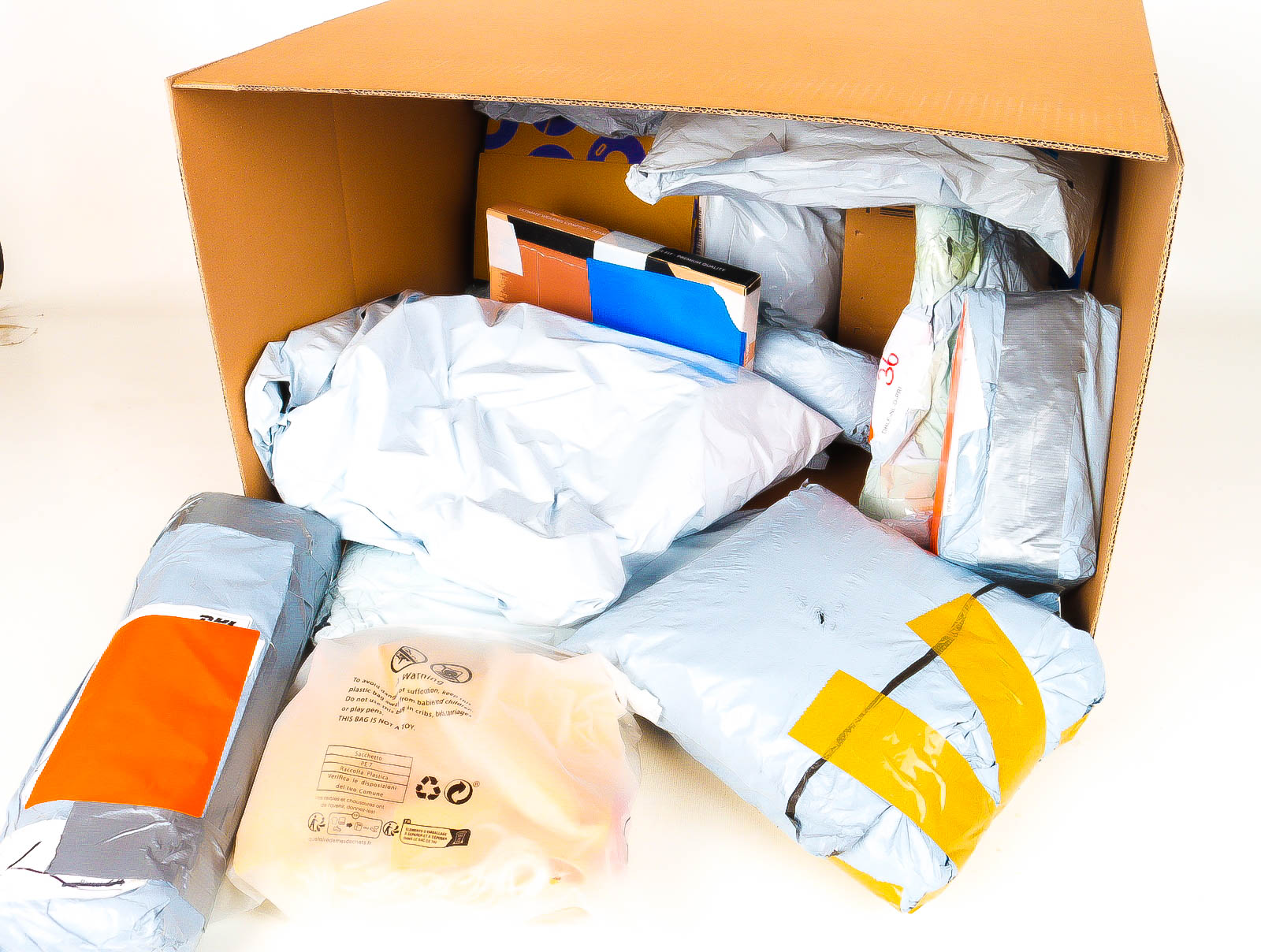 Deze pakketten zijn afkomstig van online retailers. De artikelen zijn binnen de zichttermijn teruggestuurd of zijn niet geleverd vanwege foutieve adressen, retourzendingen, of andere redenen.
