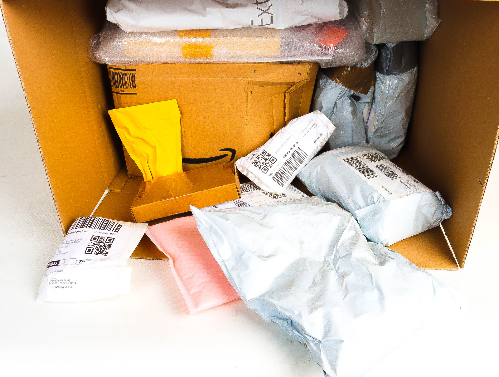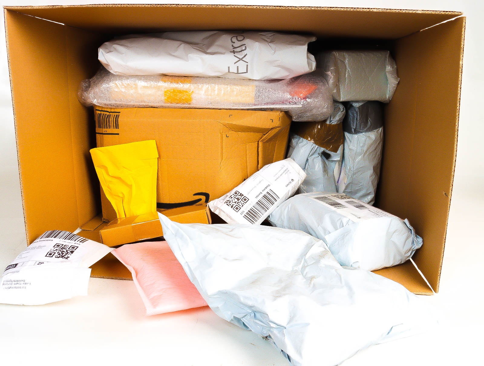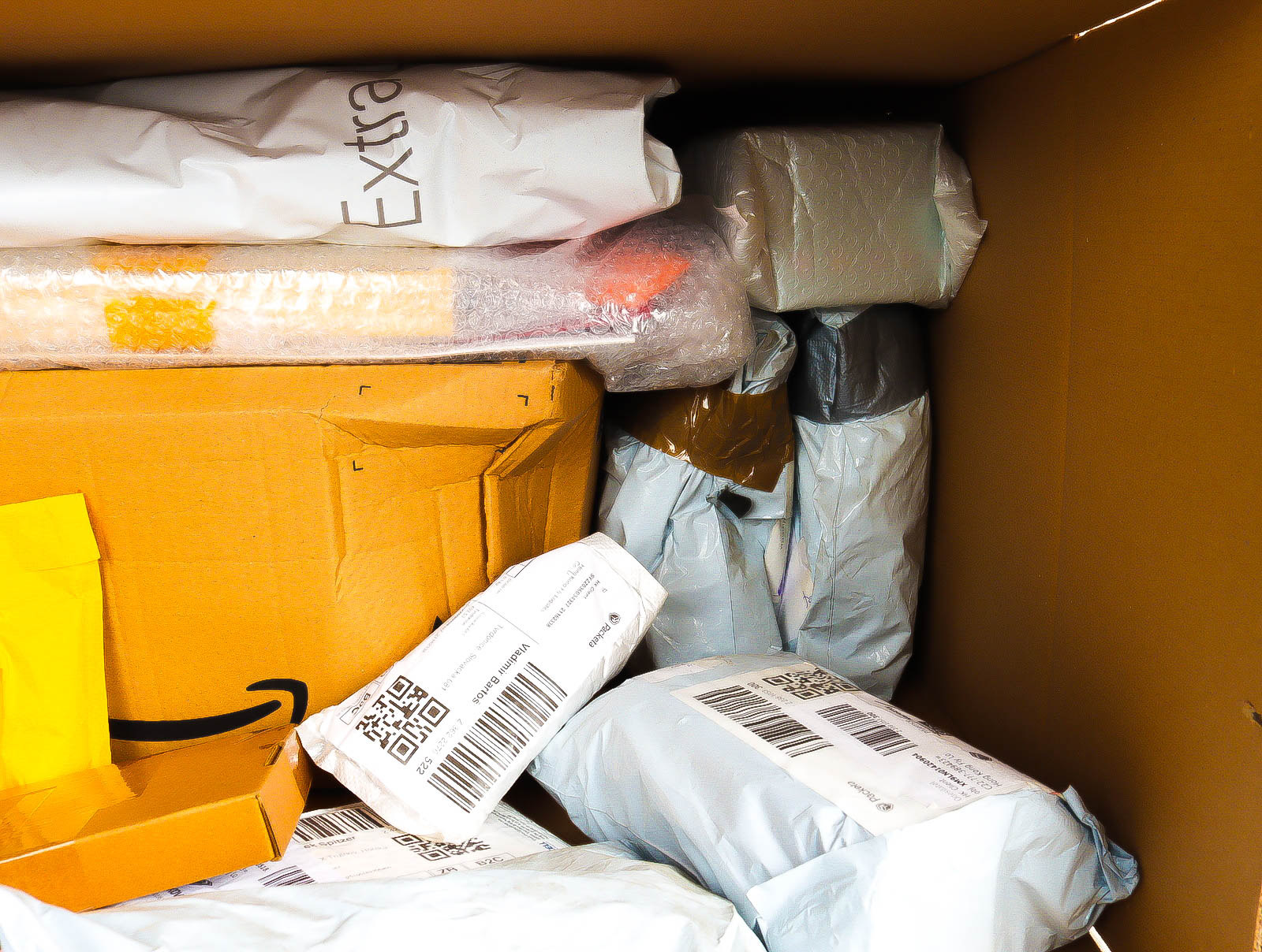 Deze pakketten zijn afkomstig van online retailers. De artikelen zijn binnen de zichttermijn teruggestuurd of zijn niet geleverd vanwege foutieve adressen, retourzendingen, of andere redenen.
