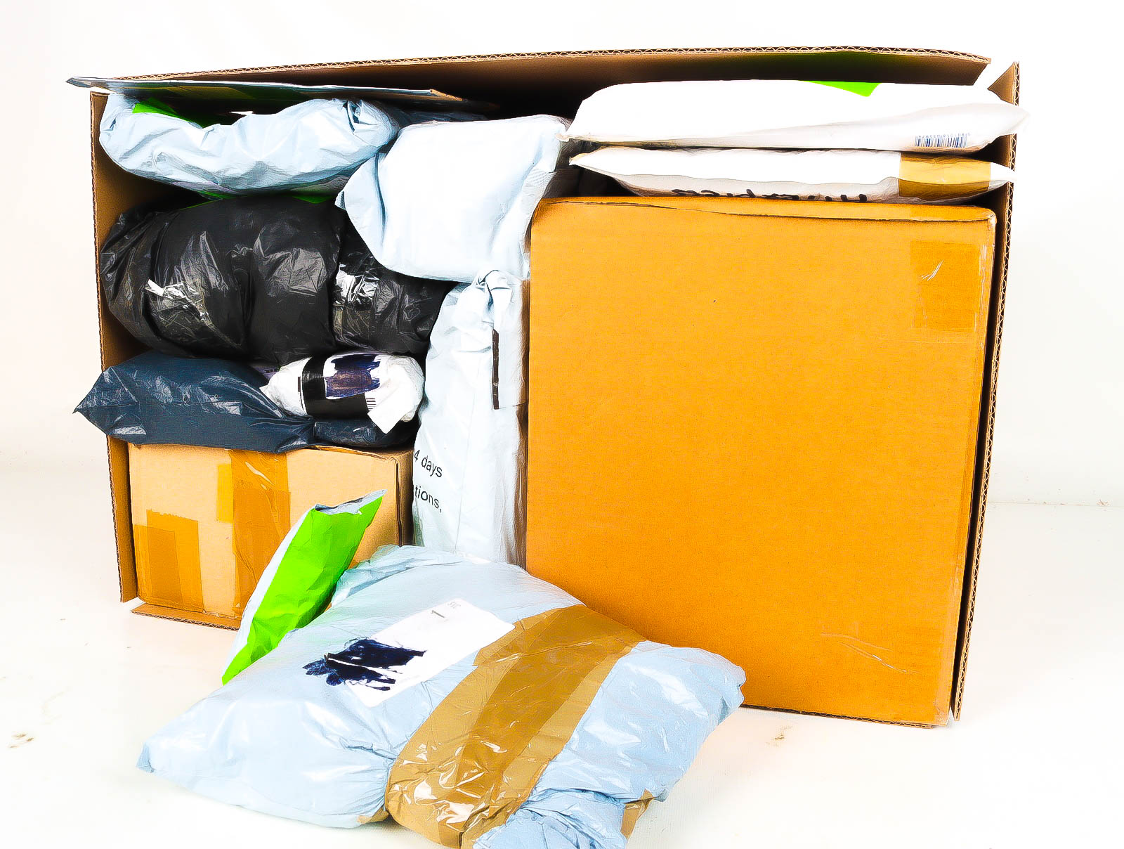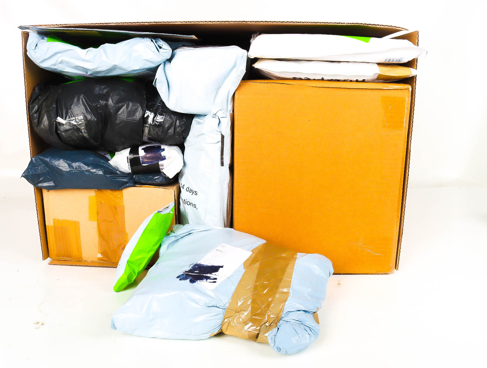 Deze pakketten zijn afkomstig van online retailers. De artikelen zijn binnen de zichttermijn teruggestuurd of zijn niet geleverd vanwege foutieve adressen, retourzendingen, of andere redenen.