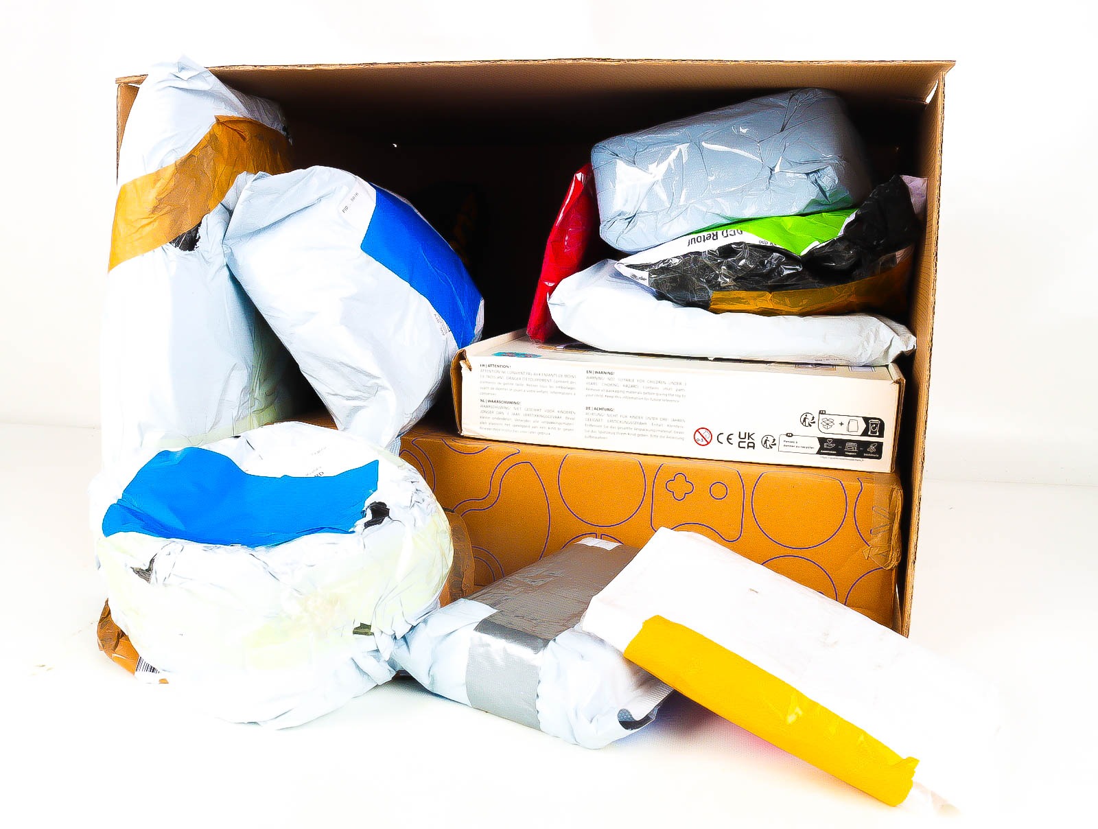 Deze pakketten zijn afkomstig van online retailers. De artikelen zijn binnen de zichttermijn teruggestuurd of zijn niet geleverd vanwege foutieve adressen, retourzendingen, of andere redenen.