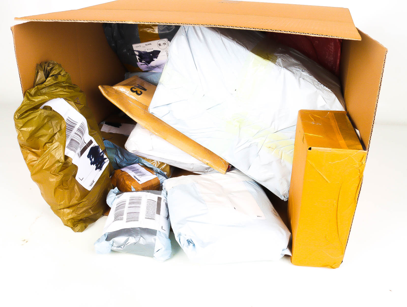 Deze pakketten zijn afkomstig van online retailers. De artikelen zijn binnen de zichttermijn teruggestuurd of zijn niet geleverd vanwege foutieve adressen, retourzendingen, of andere redenen.