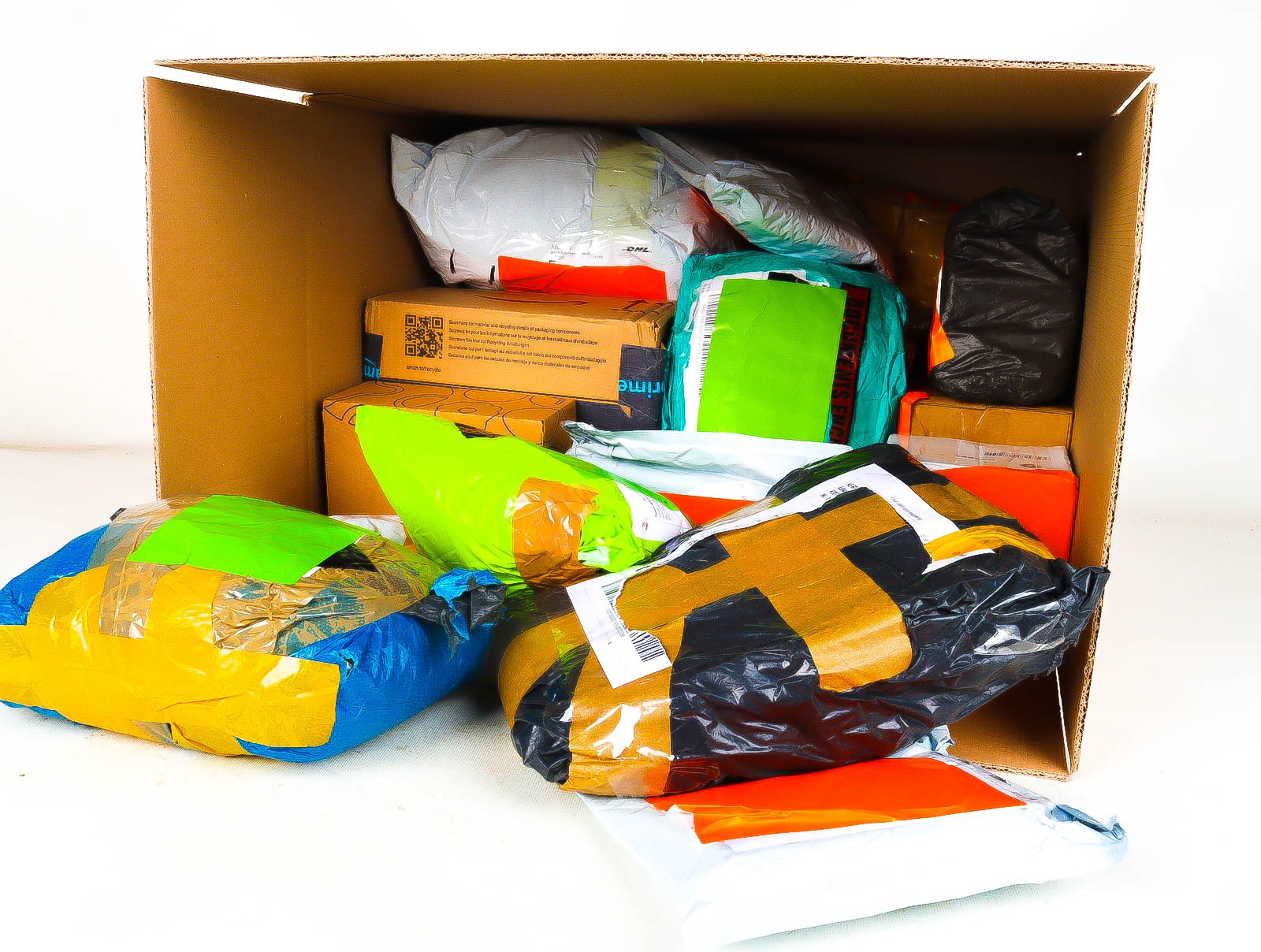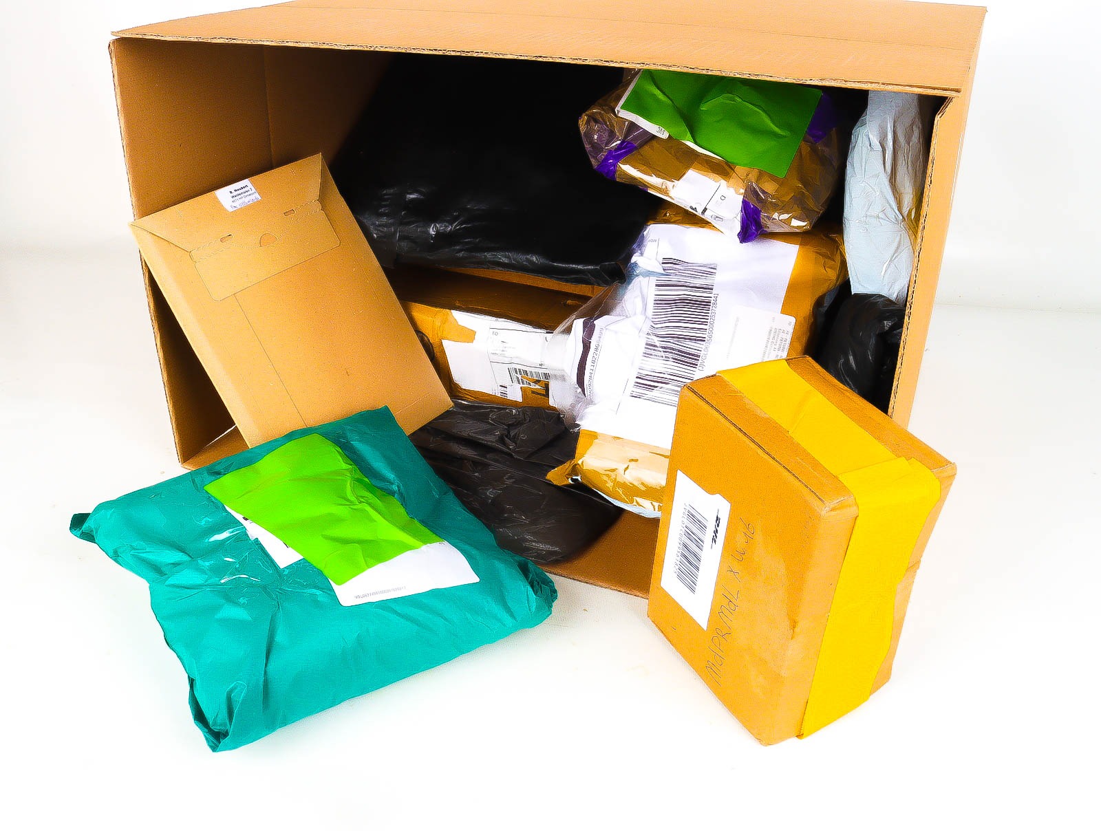 Deze pakketten zijn afkomstig van online retailers. De artikelen zijn binnen de zichttermijn teruggestuurd of zijn niet geleverd vanwege foutieve adressen, retourzendingen, of andere redenen.