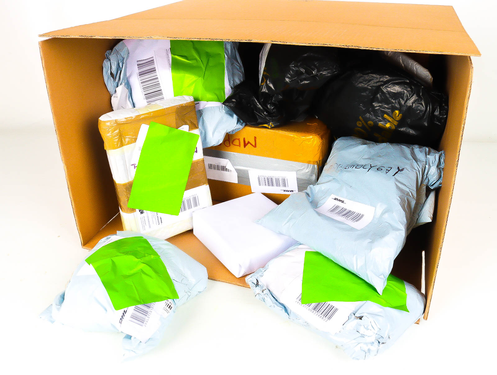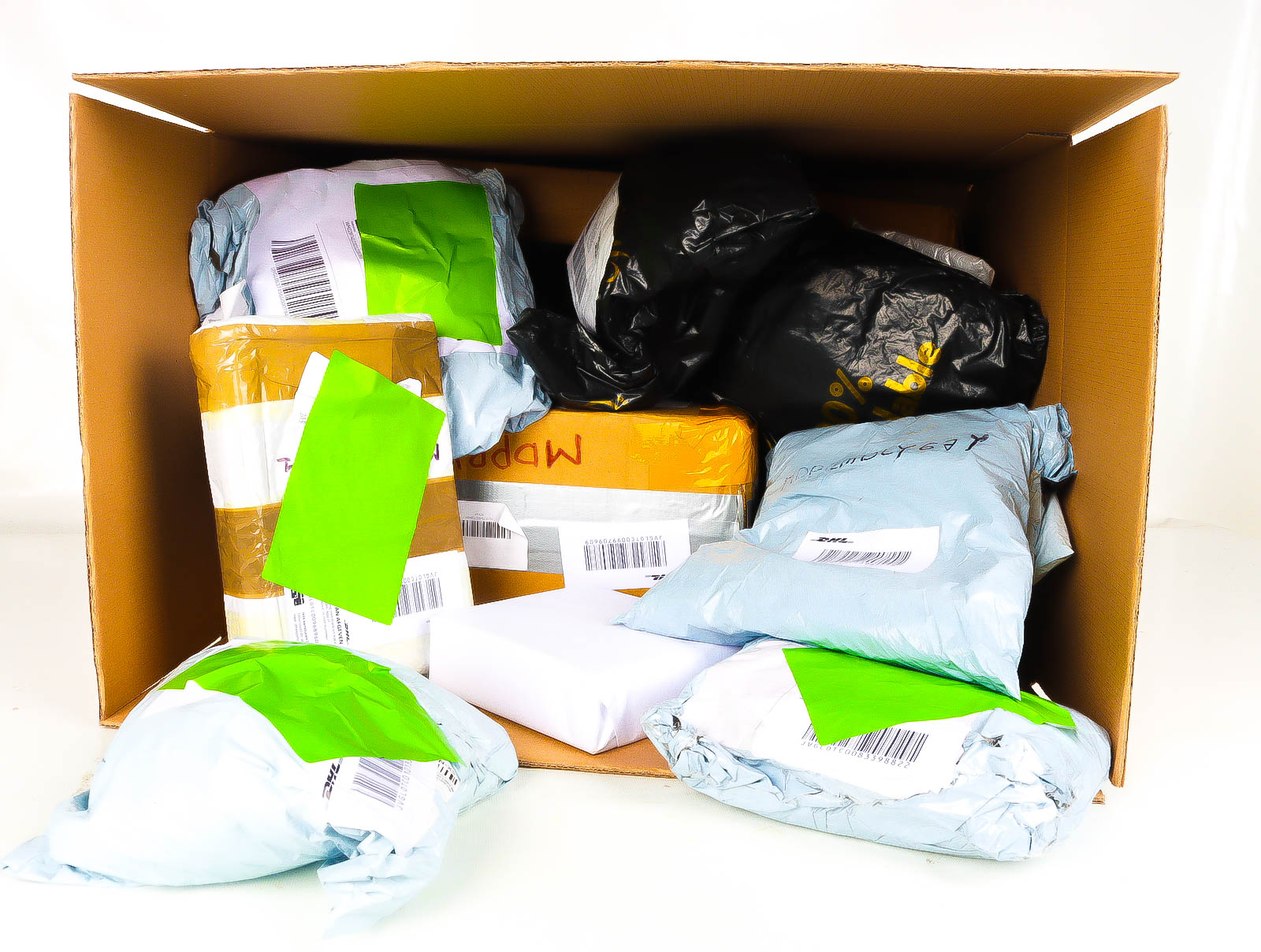 Deze pakketten zijn afkomstig van online retailers. De artikelen zijn binnen de zichttermijn teruggestuurd of zijn niet geleverd vanwege foutieve adressen, retourzendingen, of andere redenen.