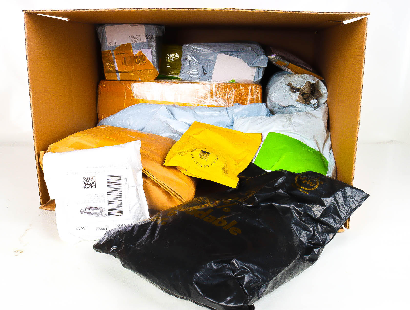 Deze pakketten zijn afkomstig van online retailers. De artikelen zijn binnen de zichttermijn teruggestuurd of zijn niet geleverd vanwege foutieve adressen, retourzendingen, of andere redenen.