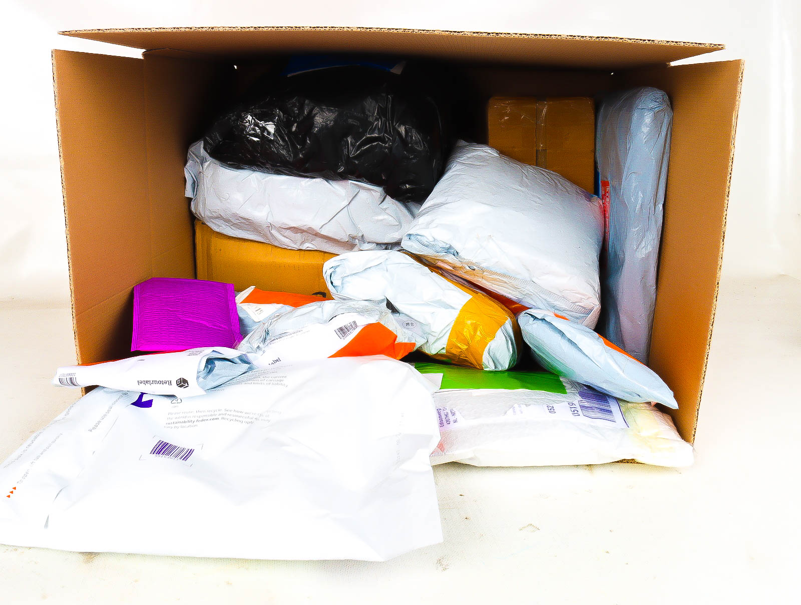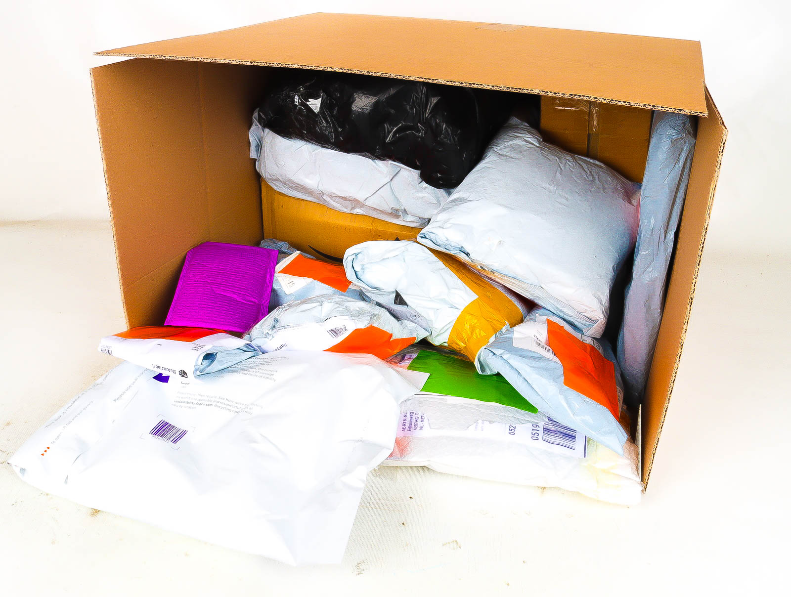 Deze pakketten zijn afkomstig van online retailers. De artikelen zijn binnen de zichttermijn teruggestuurd of zijn niet geleverd vanwege foutieve adressen, retourzendingen, of andere redenen.