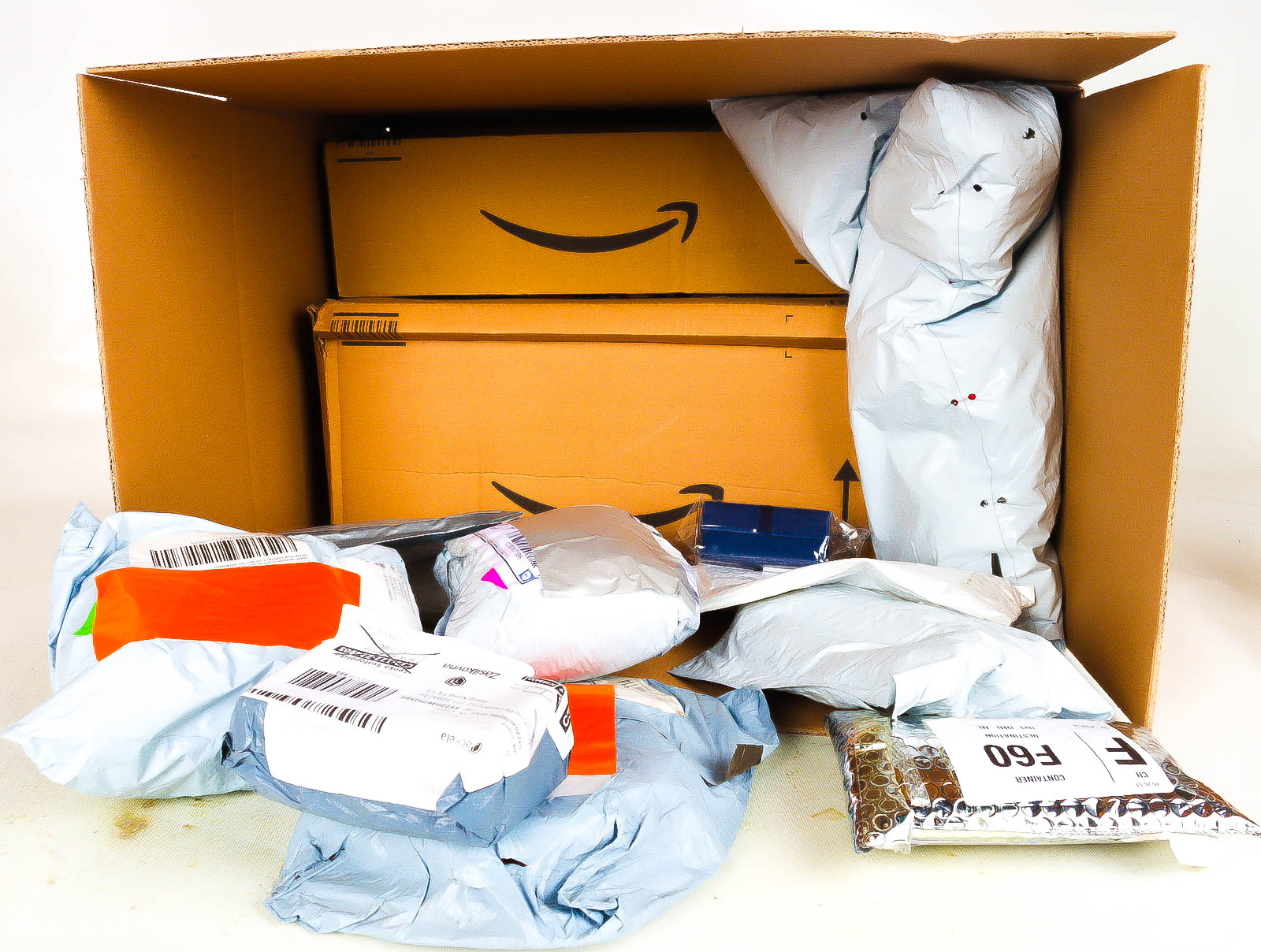 Deze pakketten zijn afkomstig van online retailers. De artikelen zijn binnen de zichttermijn teruggestuurd of zijn niet geleverd vanwege foutieve adressen, retourzendingen, of andere redenen.