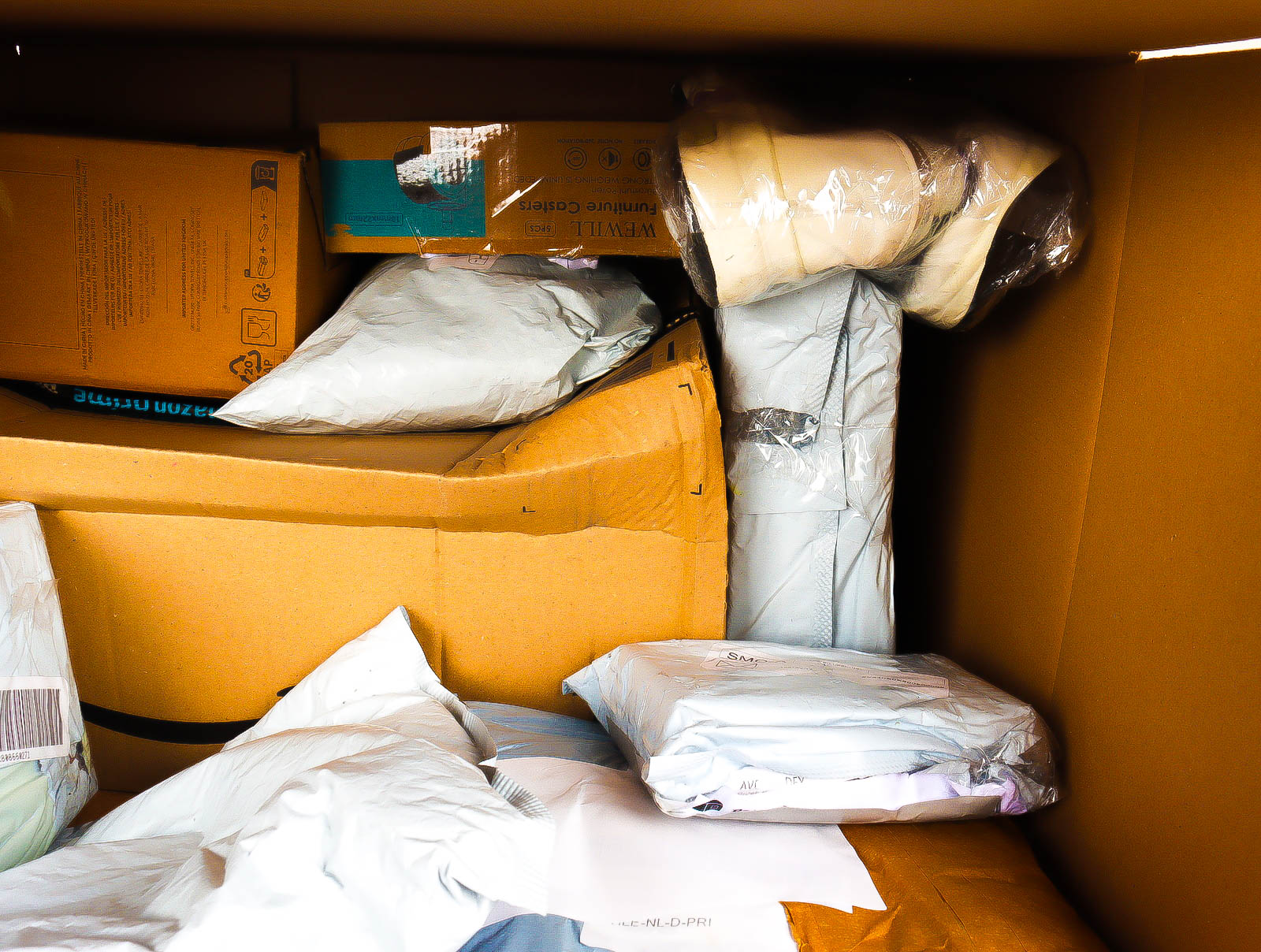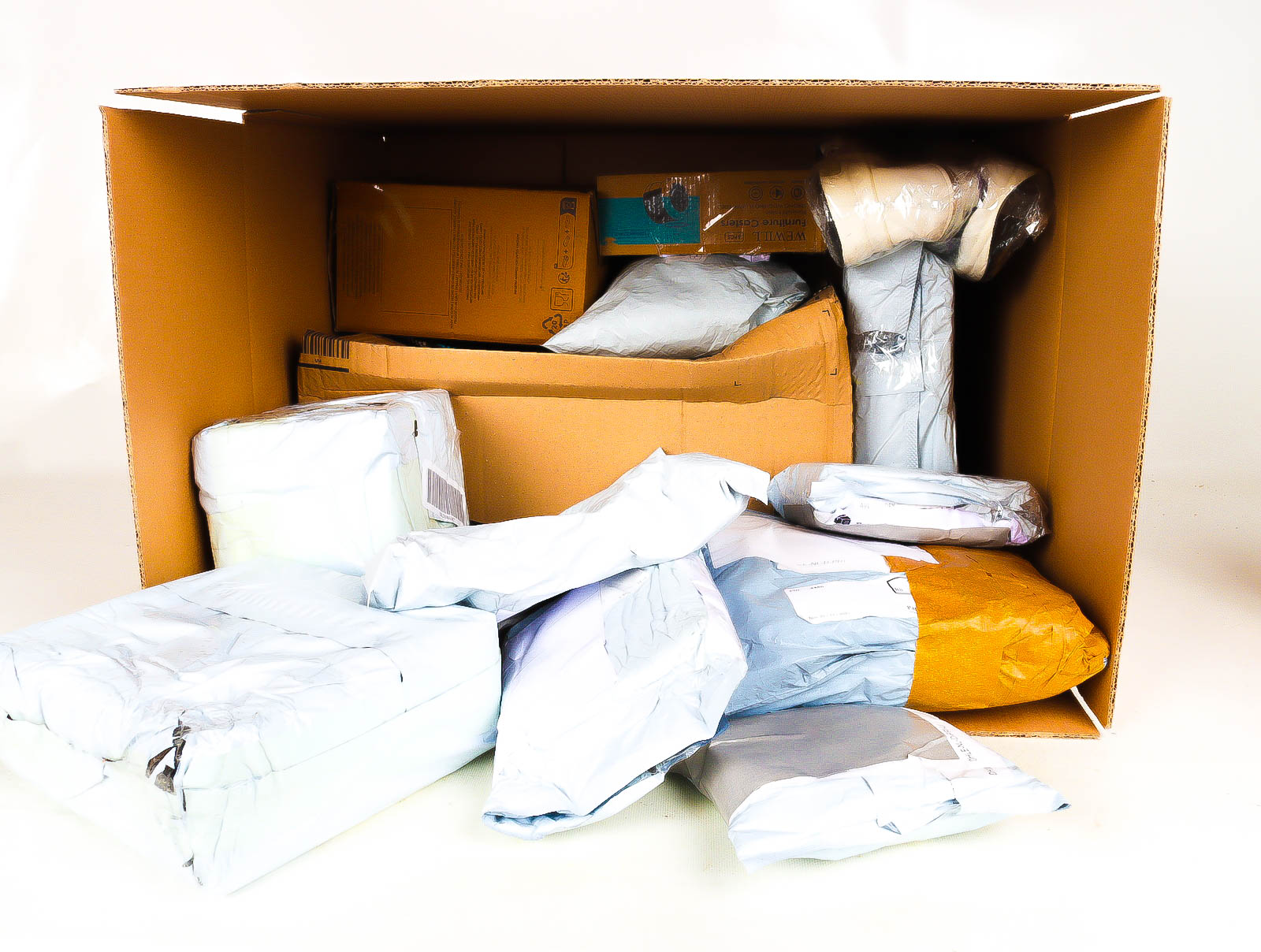 Deze pakketten zijn afkomstig van online retailers. De artikelen zijn binnen de zichttermijn teruggestuurd of zijn niet geleverd vanwege foutieve adressen, retourzendingen, of andere redenen.