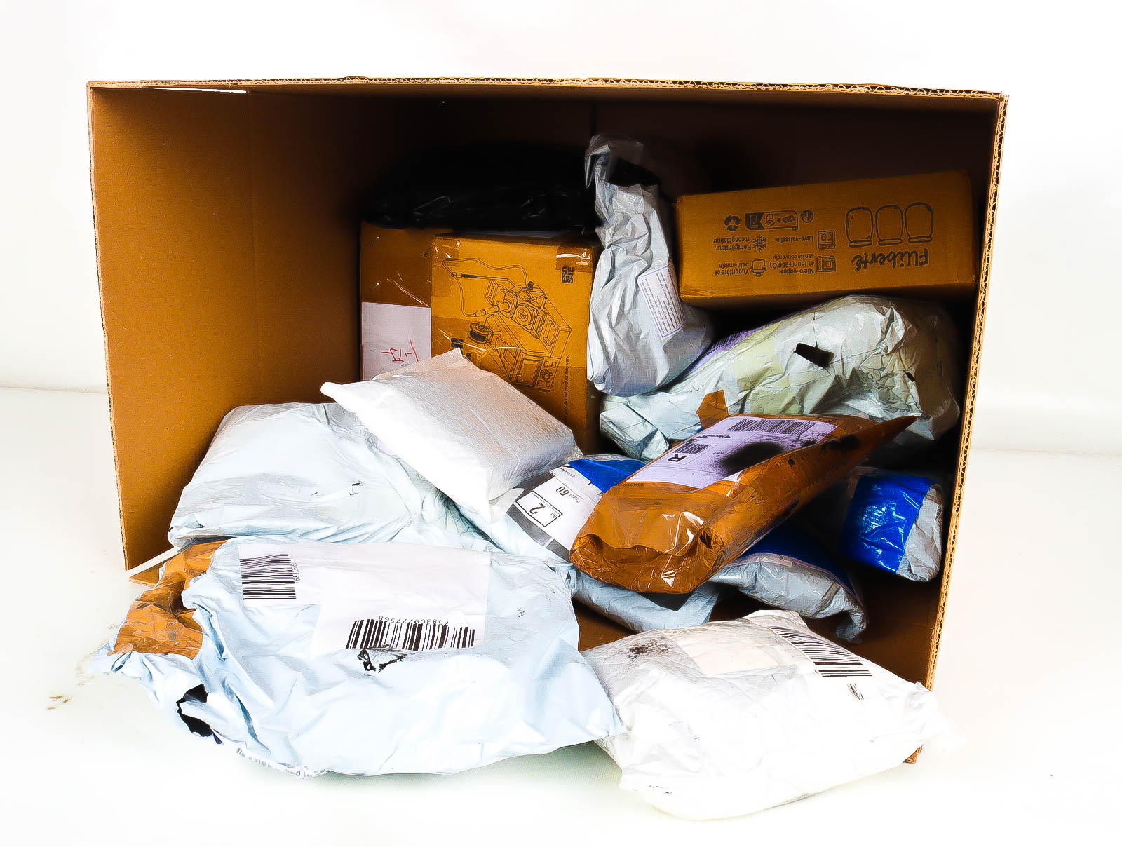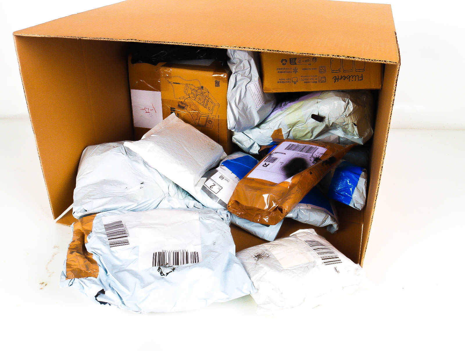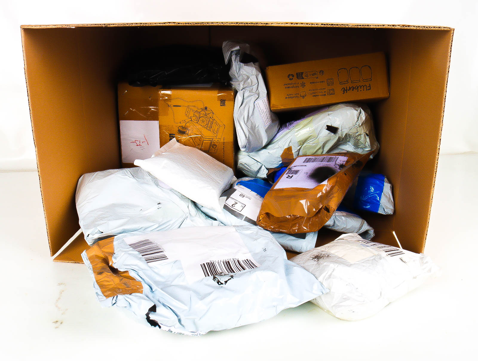 Deze pakketten zijn afkomstig van online retailers. De artikelen zijn binnen de zichttermijn teruggestuurd of zijn niet geleverd vanwege foutieve adressen, retourzendingen, of andere redenen.