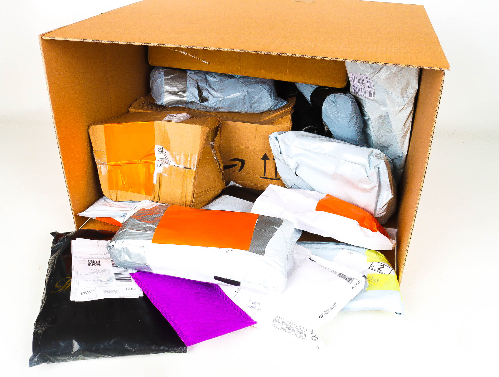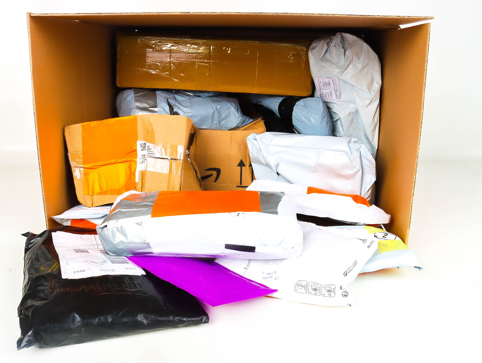 Deze pakketten zijn afkomstig van online retailers. De artikelen zijn binnen de zichttermijn teruggestuurd of zijn niet geleverd vanwege foutieve adressen, retourzendingen, of andere redenen.