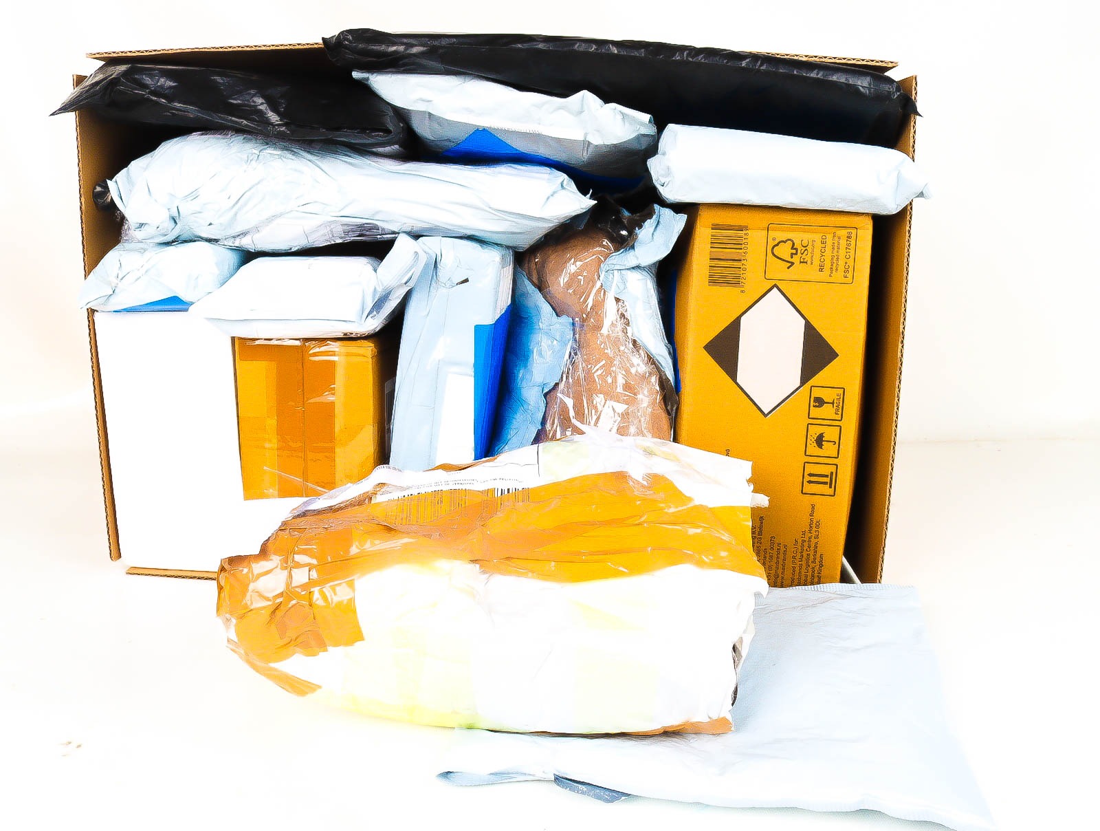Deze pakketten zijn afkomstig van online retailers. De artikelen zijn binnen de zichttermijn teruggestuurd of zijn niet geleverd vanwege foutieve adressen, retourzendingen, of andere redenen.