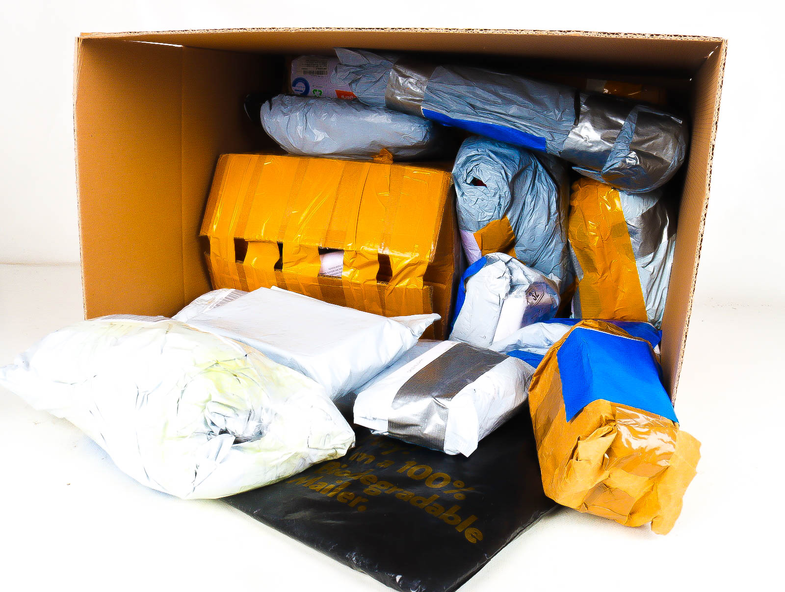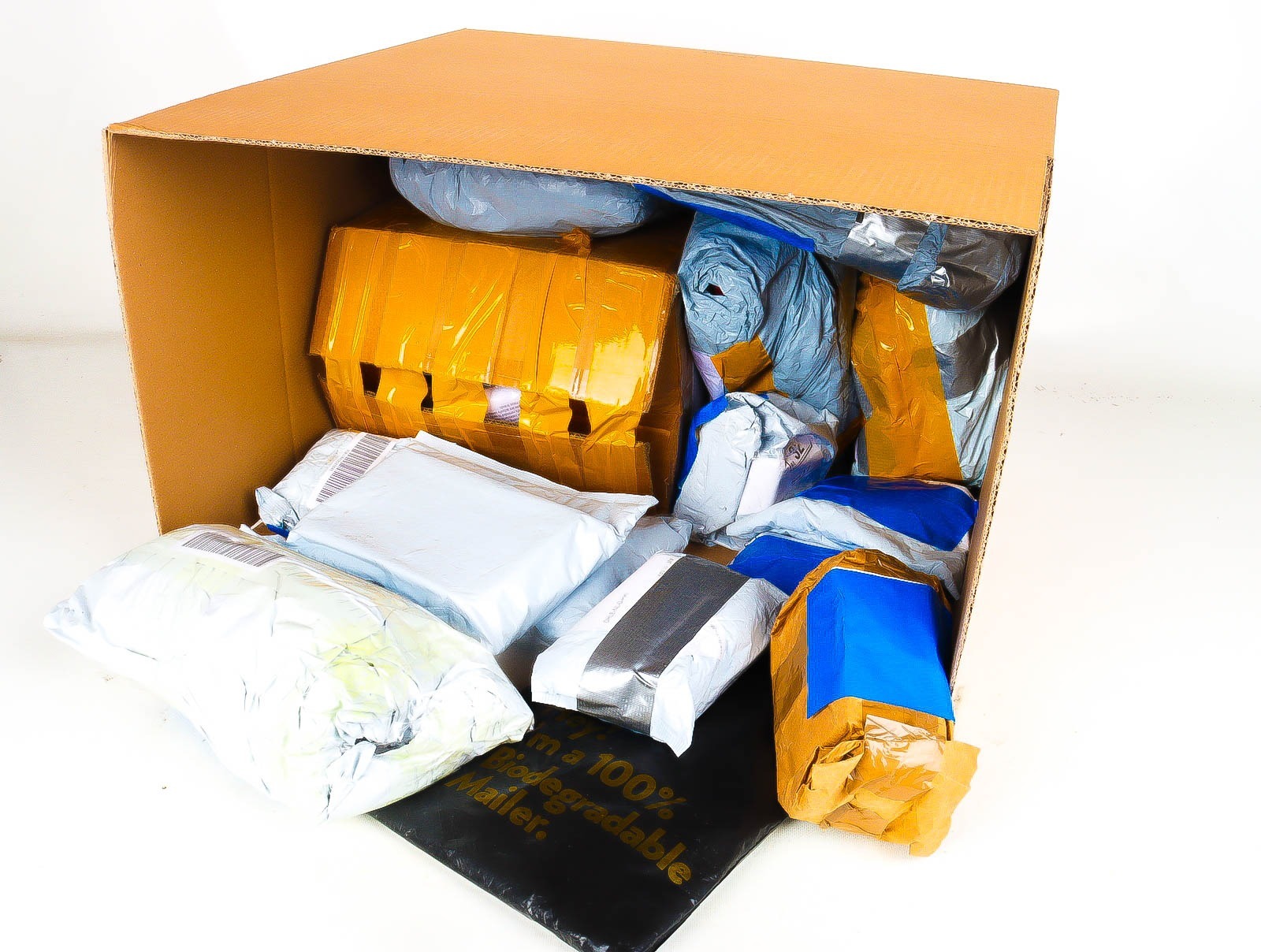 Deze pakketten zijn afkomstig van online retailers. De artikelen zijn binnen de zichttermijn teruggestuurd of zijn niet geleverd vanwege foutieve adressen, retourzendingen, of andere redenen.