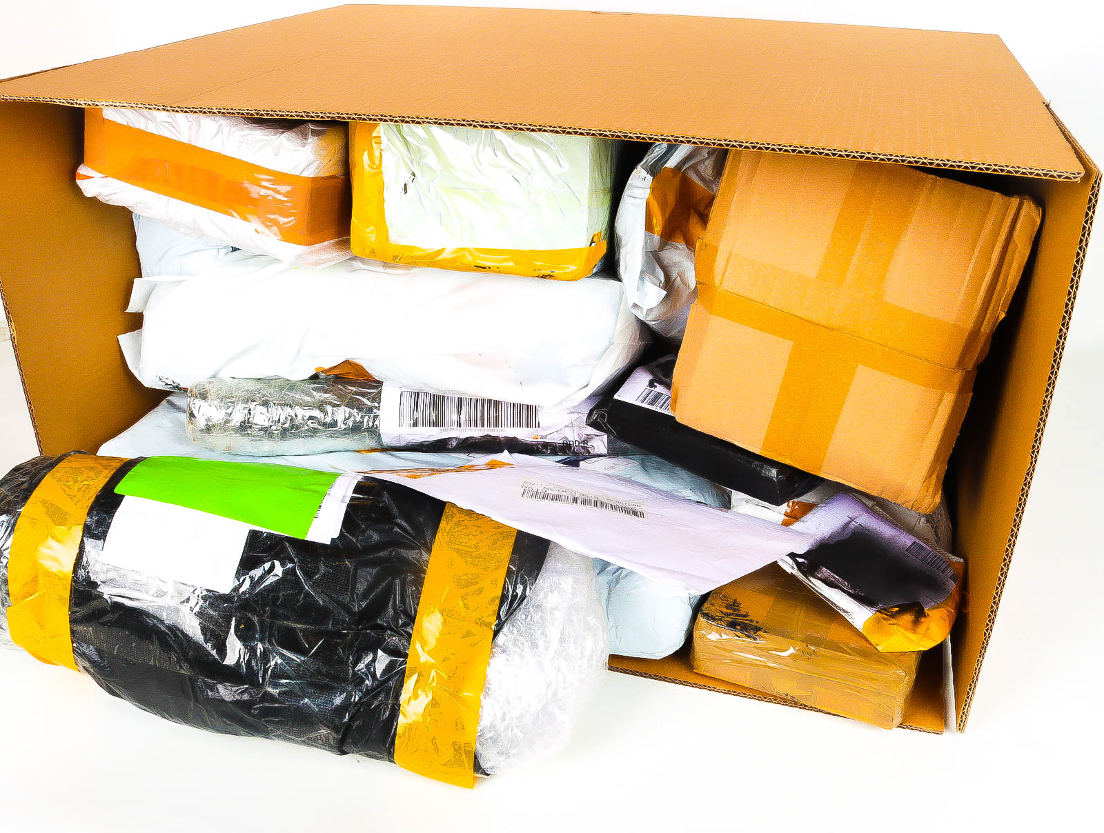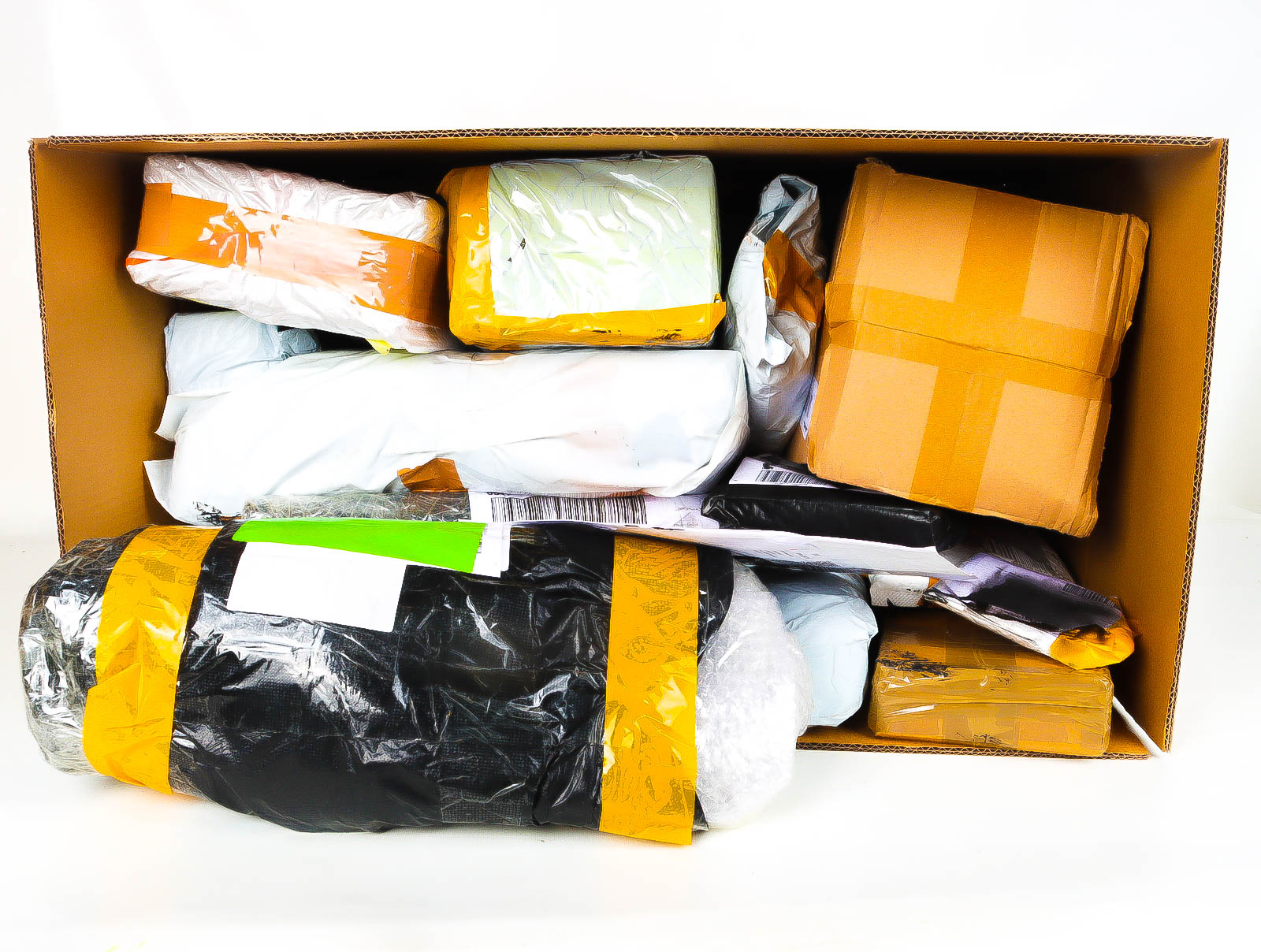 Deze pakketten zijn afkomstig van online retailers. De artikelen zijn binnen de zichttermijn teruggestuurd of zijn niet geleverd vanwege foutieve adressen, retourzendingen, of andere redenen.