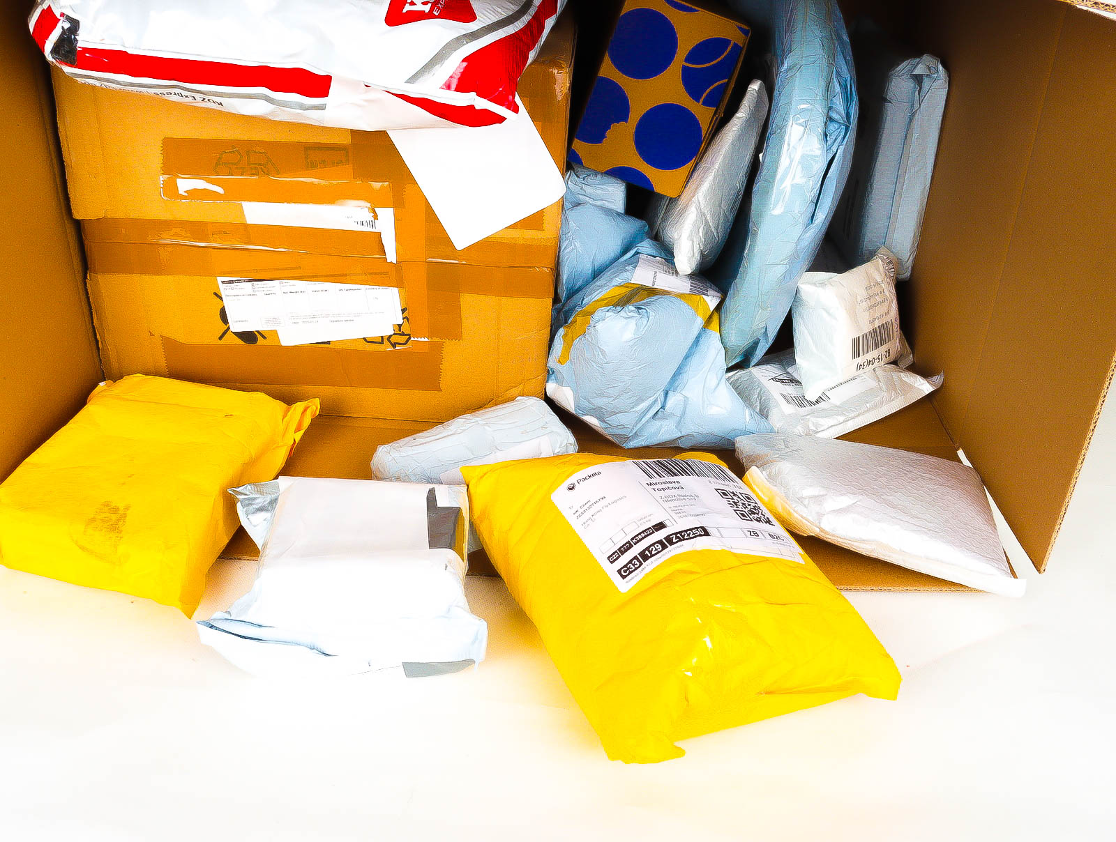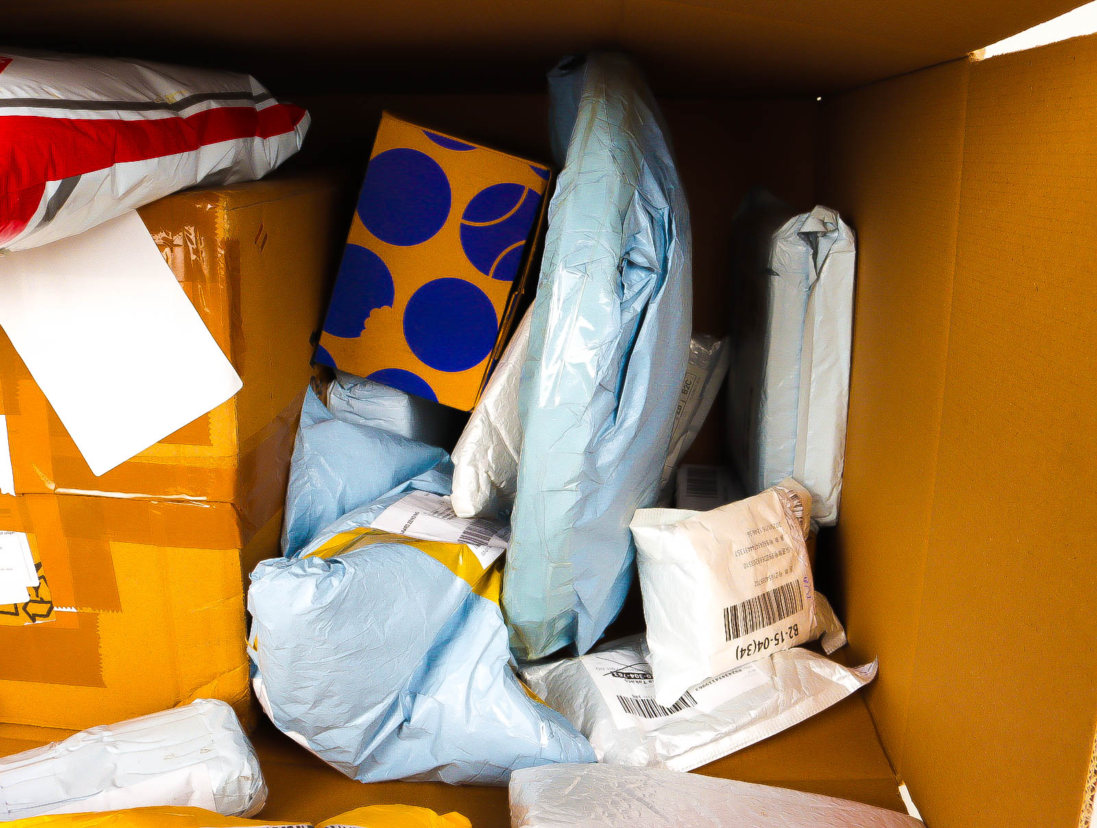 Deze pakketten zijn afkomstig van online retailers. De artikelen zijn binnen de zichttermijn teruggestuurd of zijn niet geleverd vanwege foutieve adressen, retourzendingen, of andere redenen.