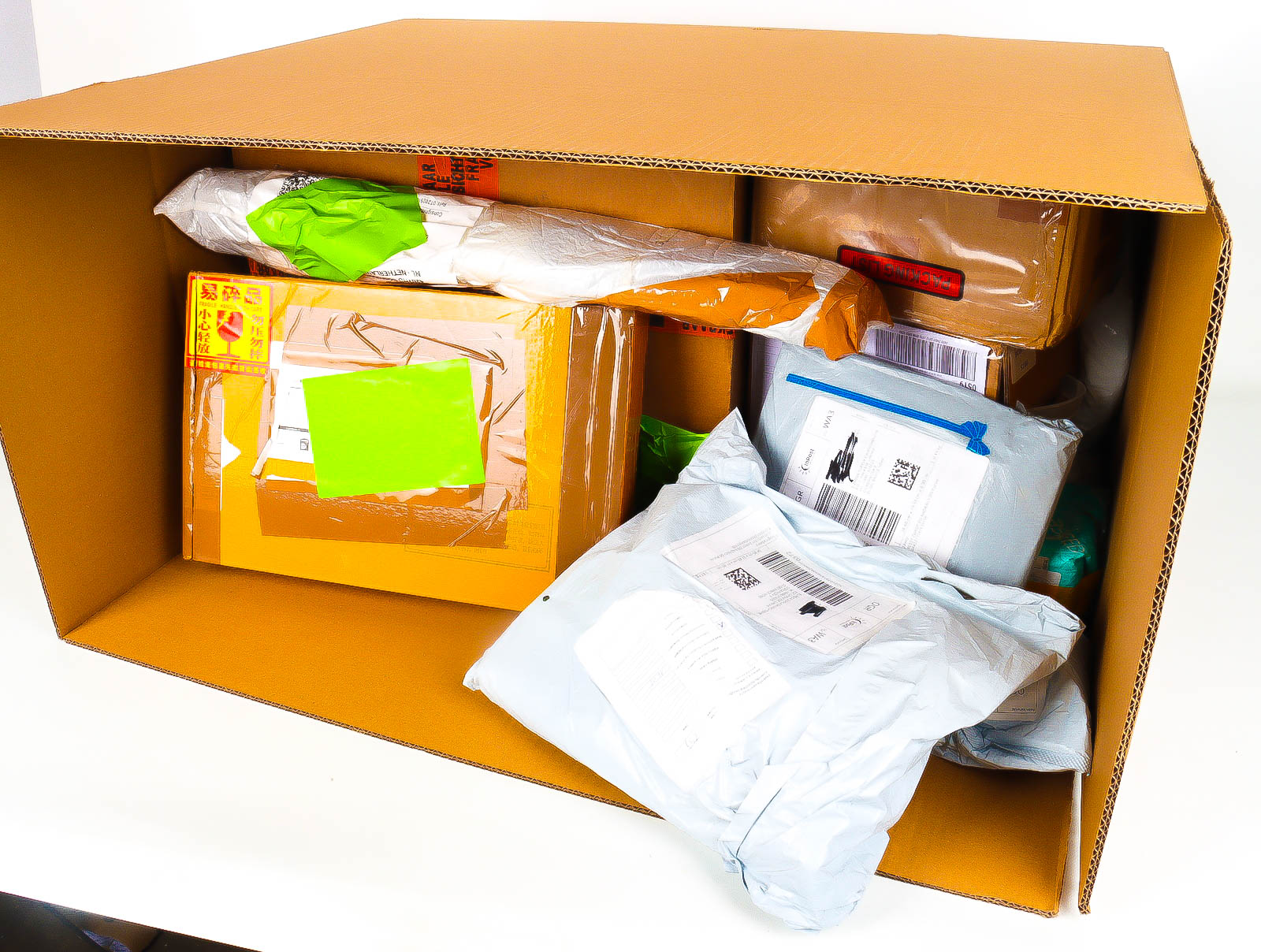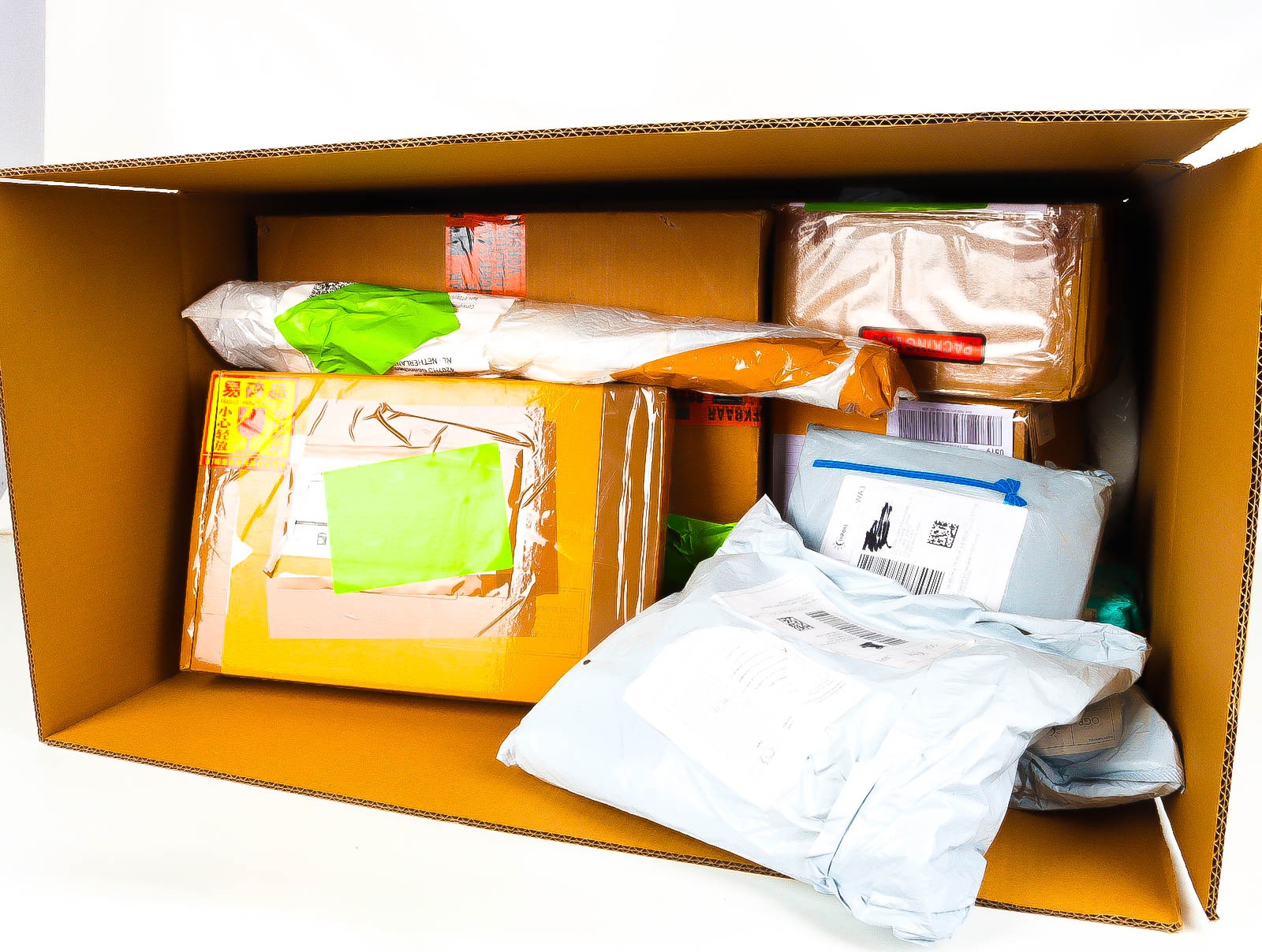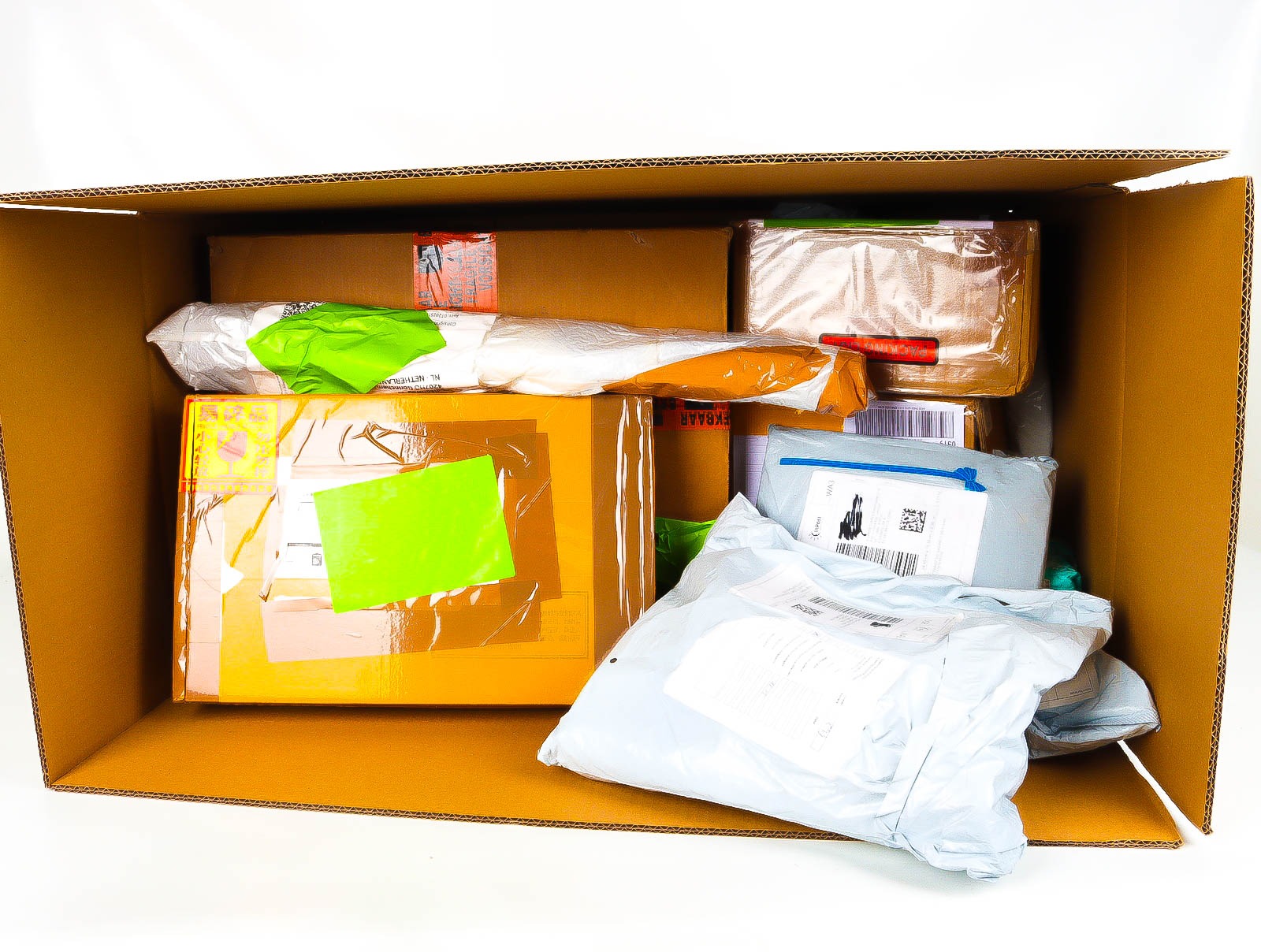 Deze pakketten zijn afkomstig van online retailers. De artikelen zijn binnen de zichttermijn teruggestuurd of zijn niet geleverd vanwege foutieve adressen, retourzendingen, of andere redenen.