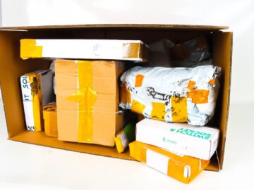 Je kunt dozen met ongeopende postpakketten kopen via onze website. Kies de doos (of dozen) die je wilt en voeg ‘m toe aan je winkelwagen.